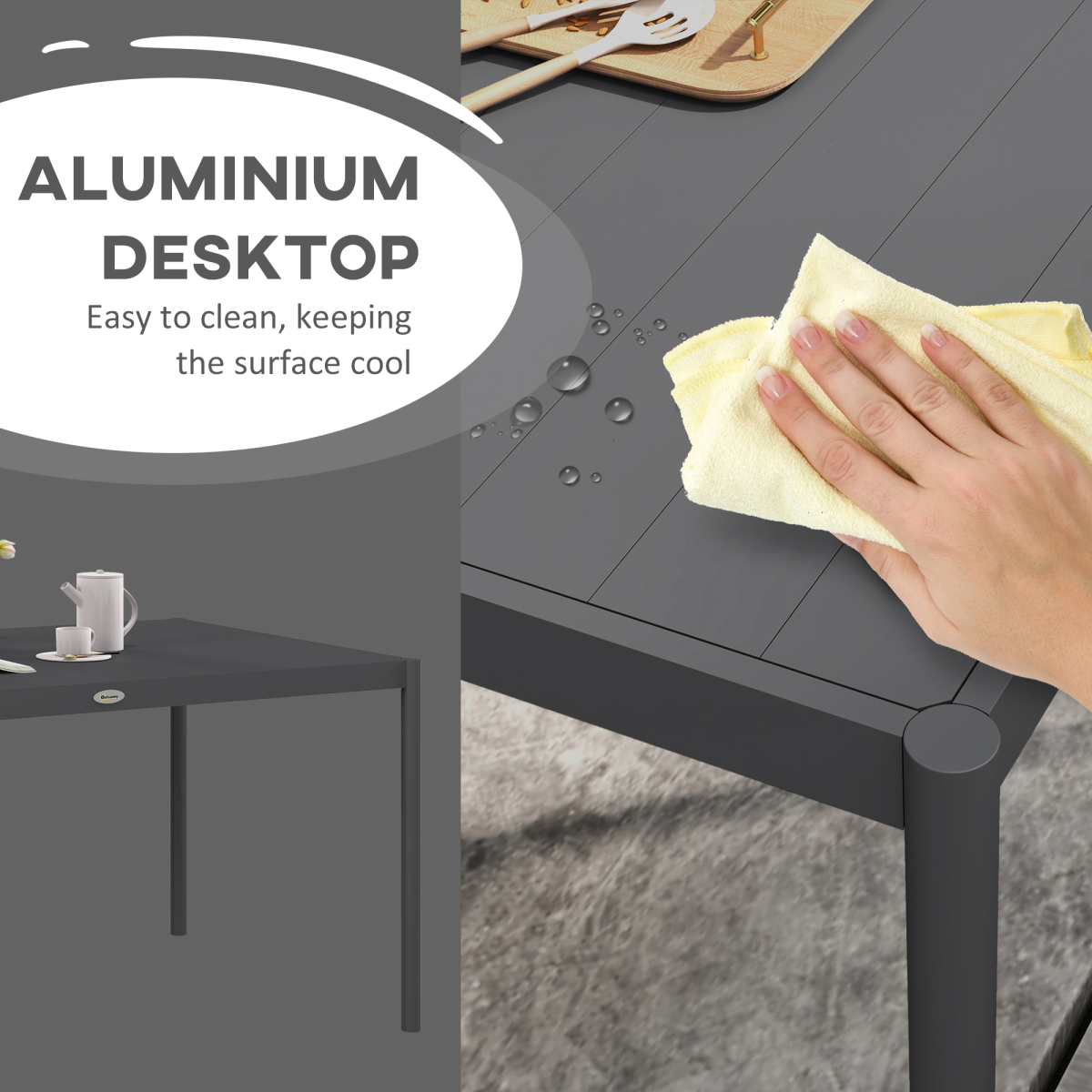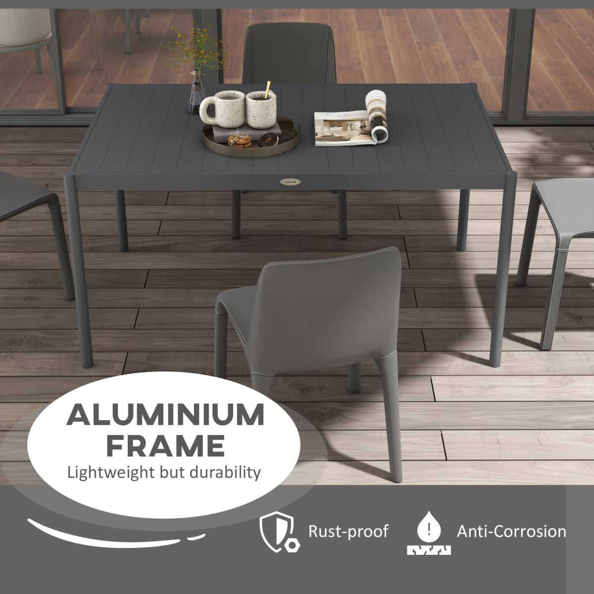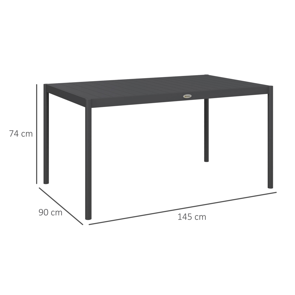 Outsunny Garden Table with Aluminium Frame Slatted Design Patio 145cm Dark Grey