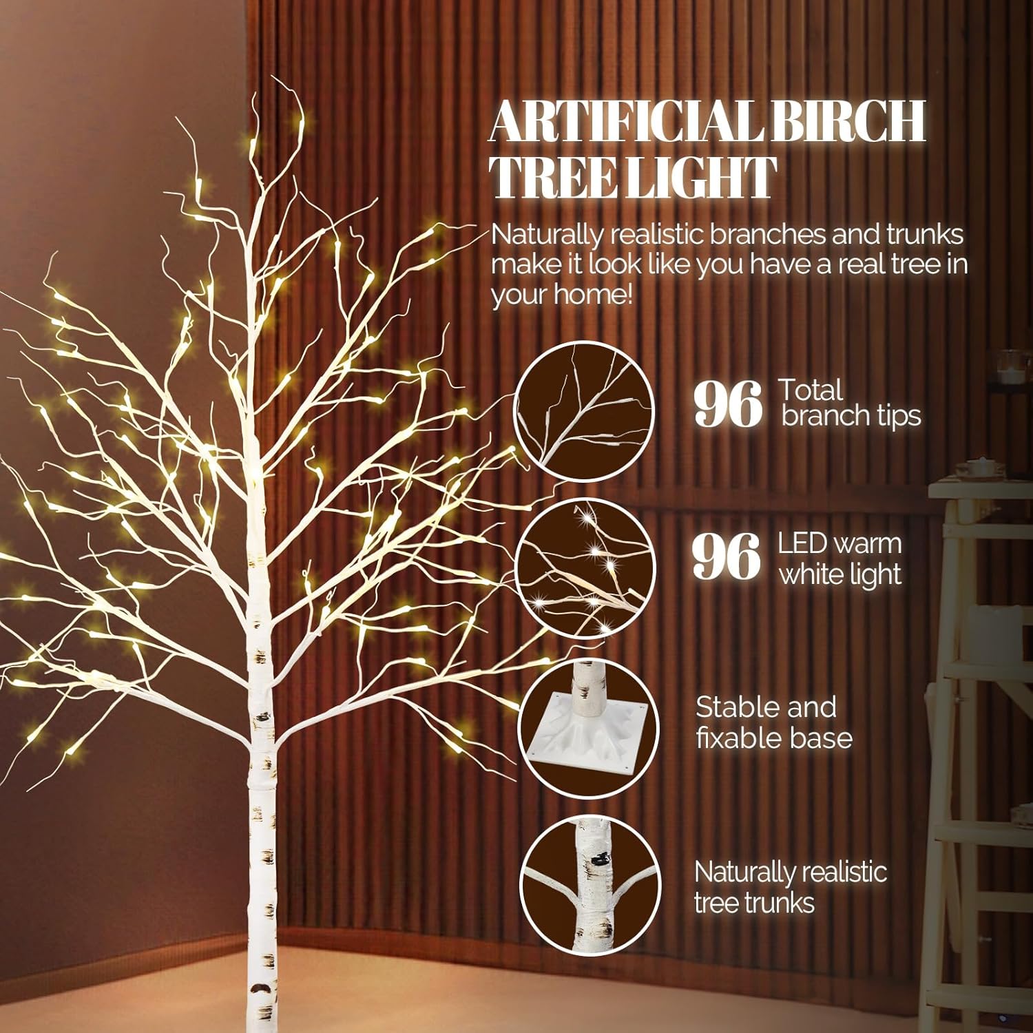 Hinsinc Birch Twig Tree Pre Lit Christmas LED Lights Xmas Decoration in White White