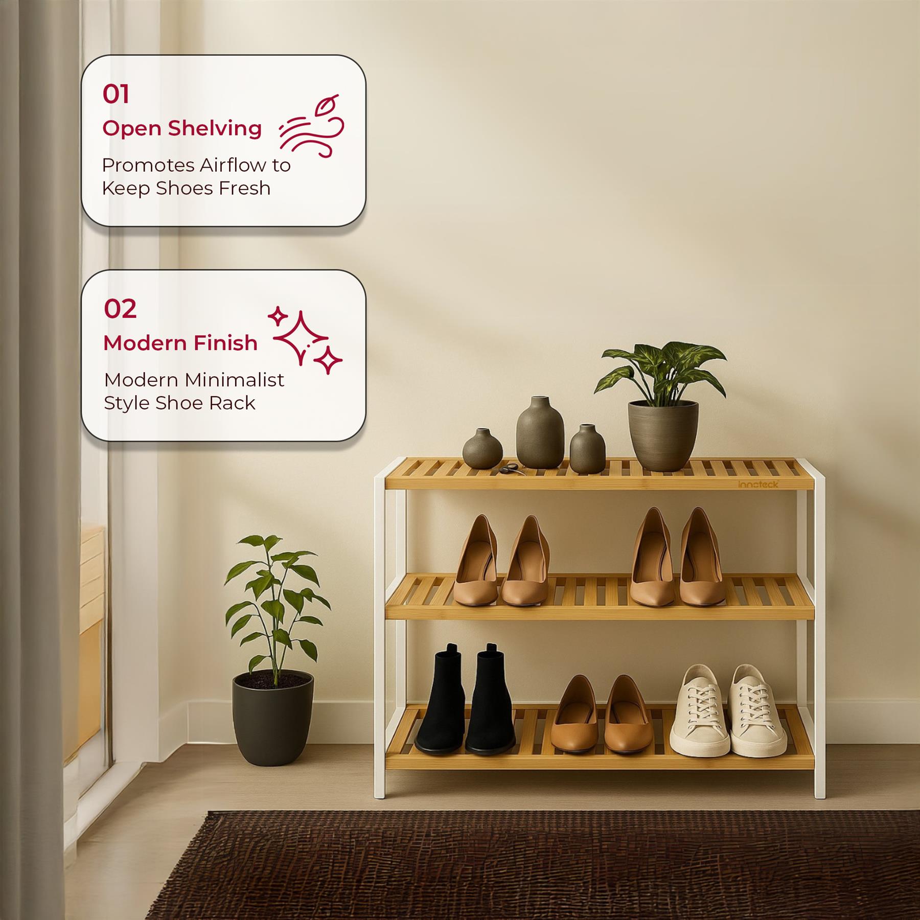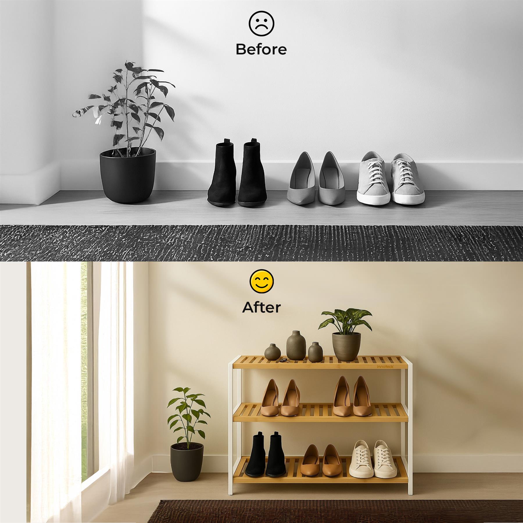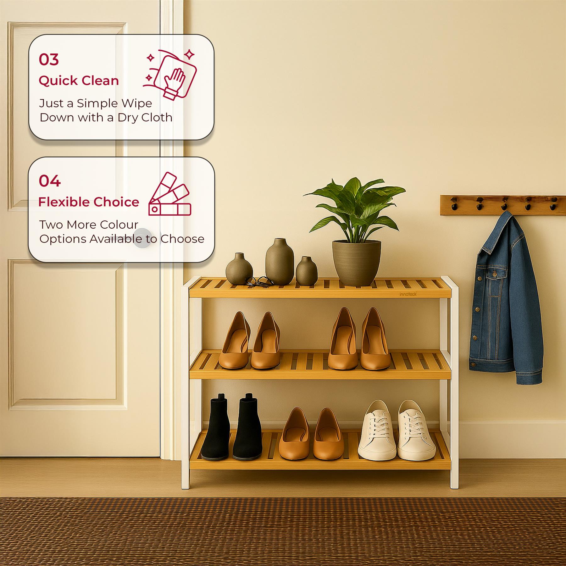 Neo 3-Tier Bamboo Shoe Rack Stand Natural Wooden Shoe Storage Shelf for Hallway