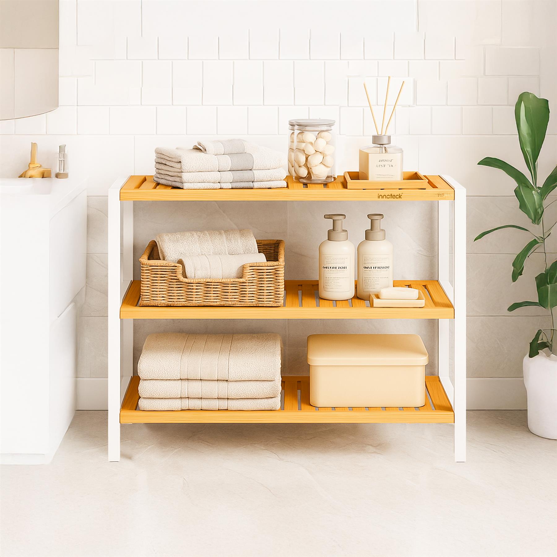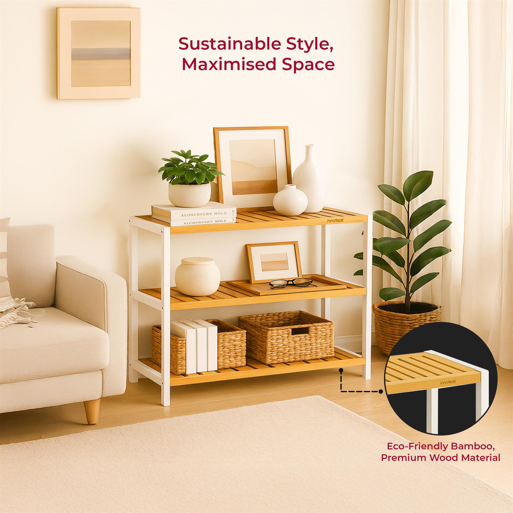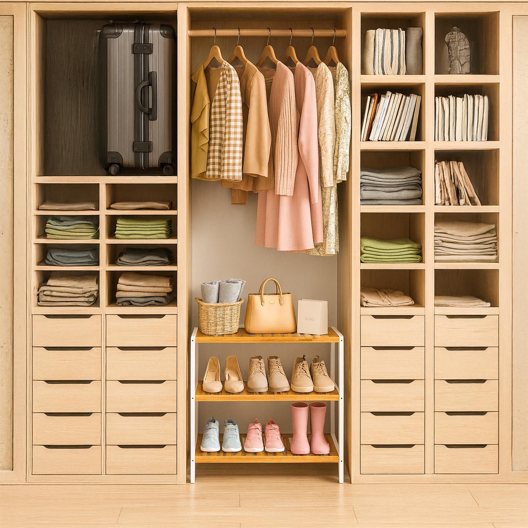 Neo 3-Tier Bamboo Shoe Rack Stand Natural Wooden Shoe Storage Shelf for Hallway
