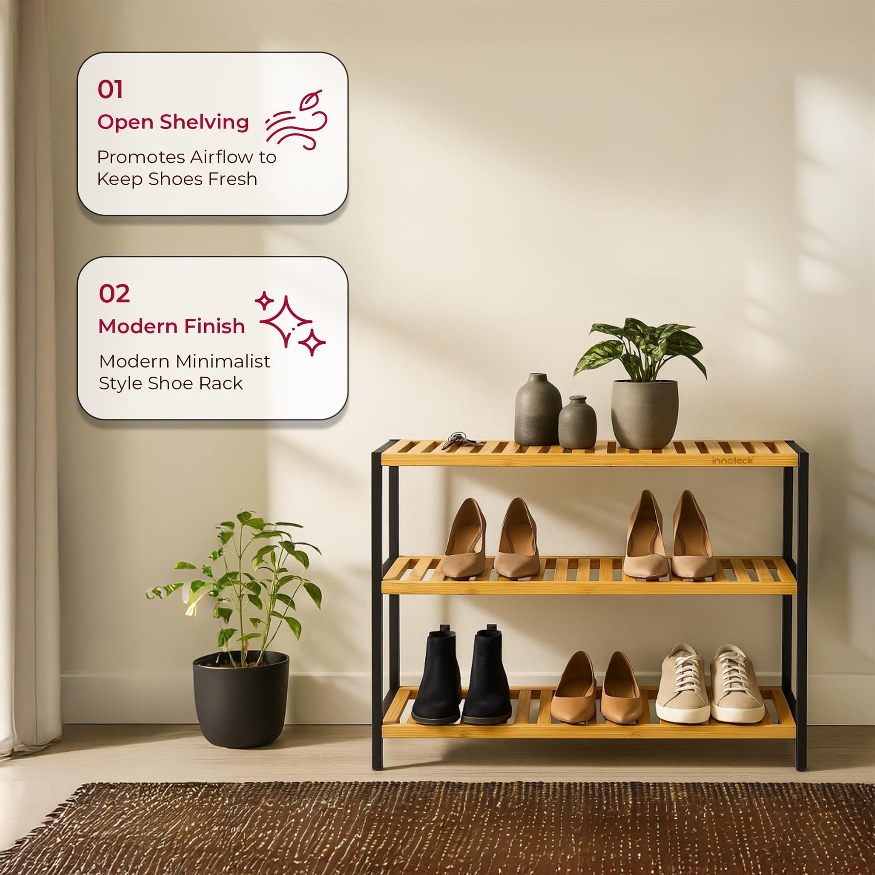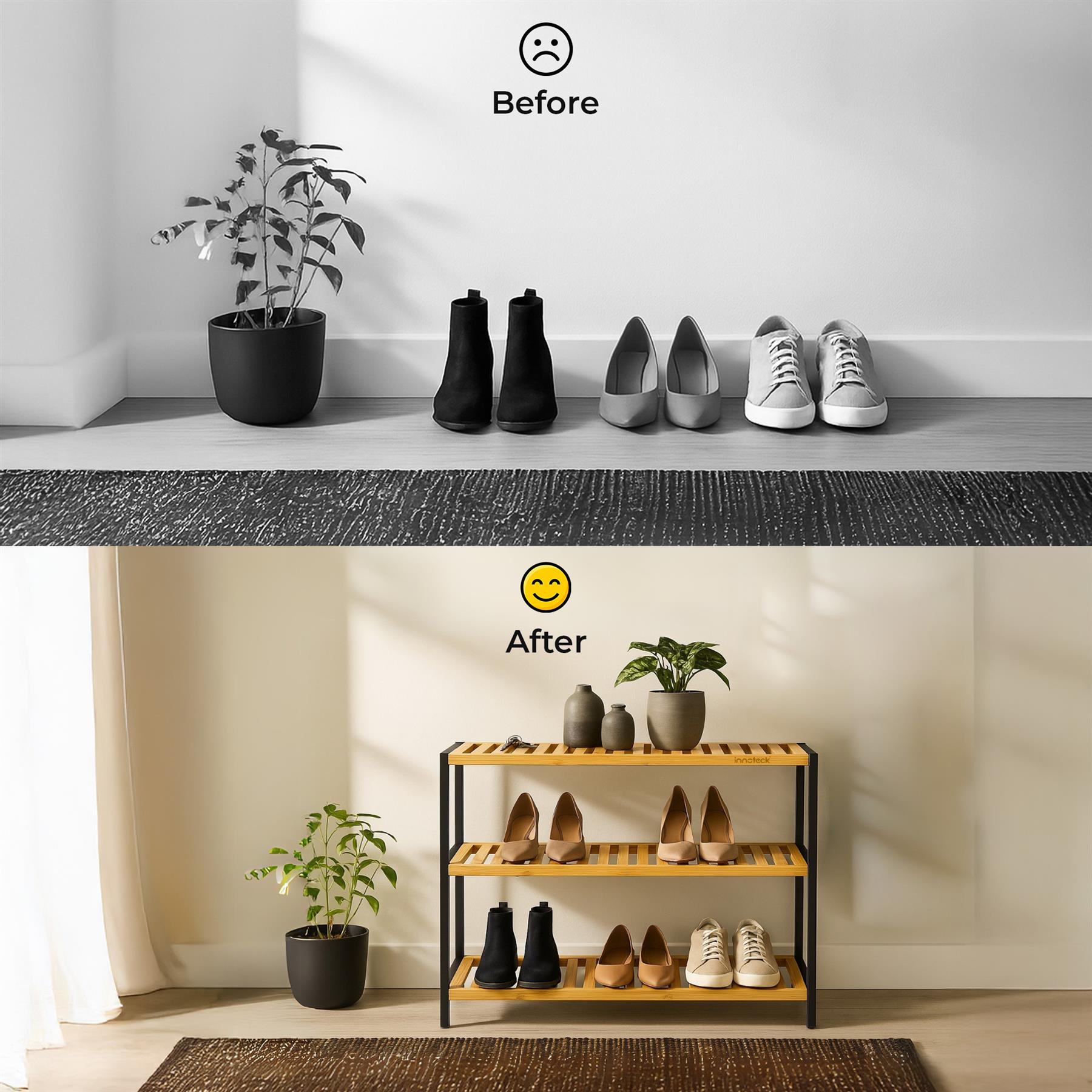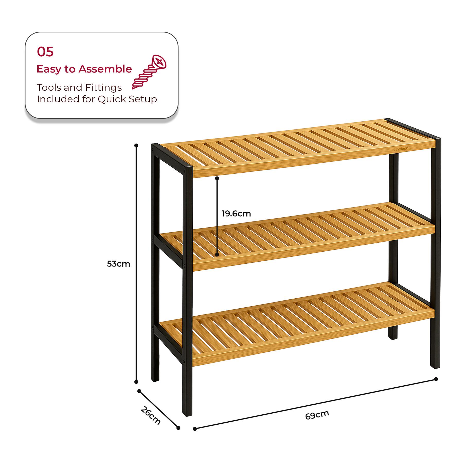 Neo 3-Tier Bamboo Shoe Rack Stand Natural Wooden Shoe Storage Shelf for Hallway