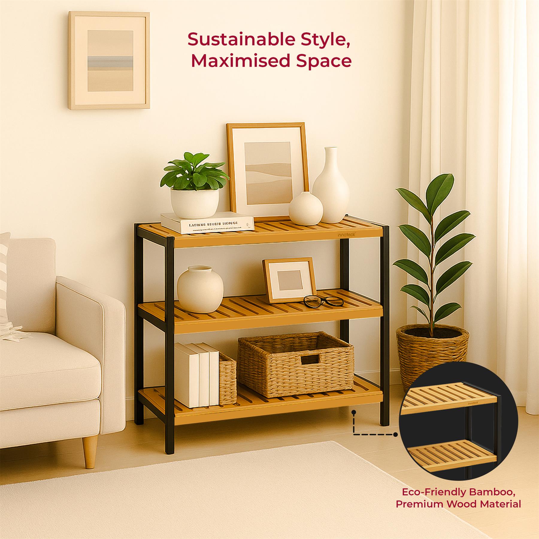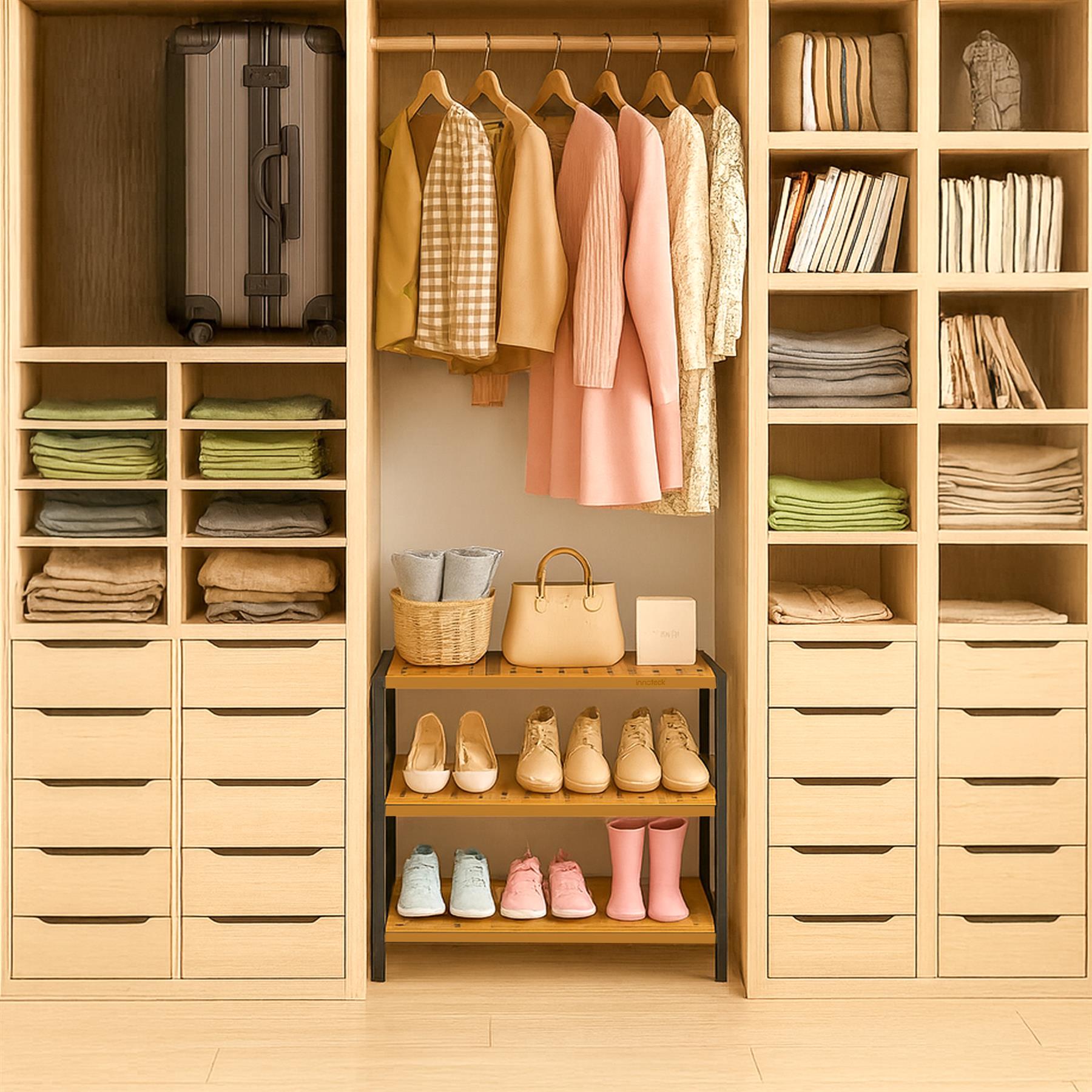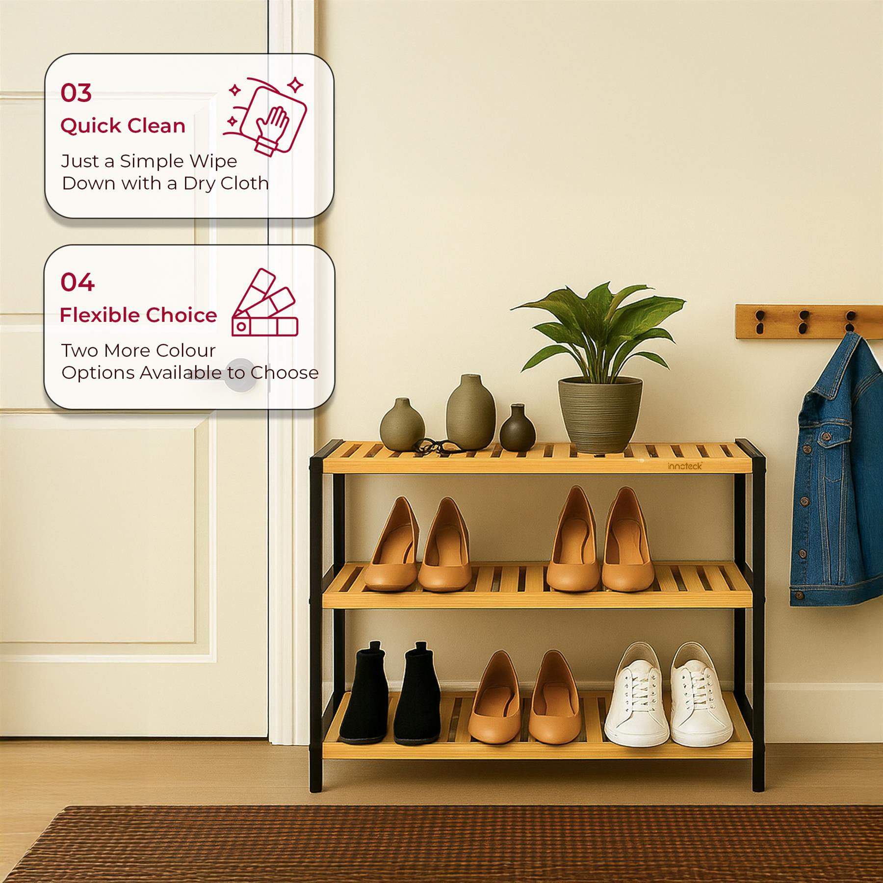 Neo 3-Tier Bamboo Shoe Rack Stand Natural Wooden Shoe Storage Shelf for Hallway