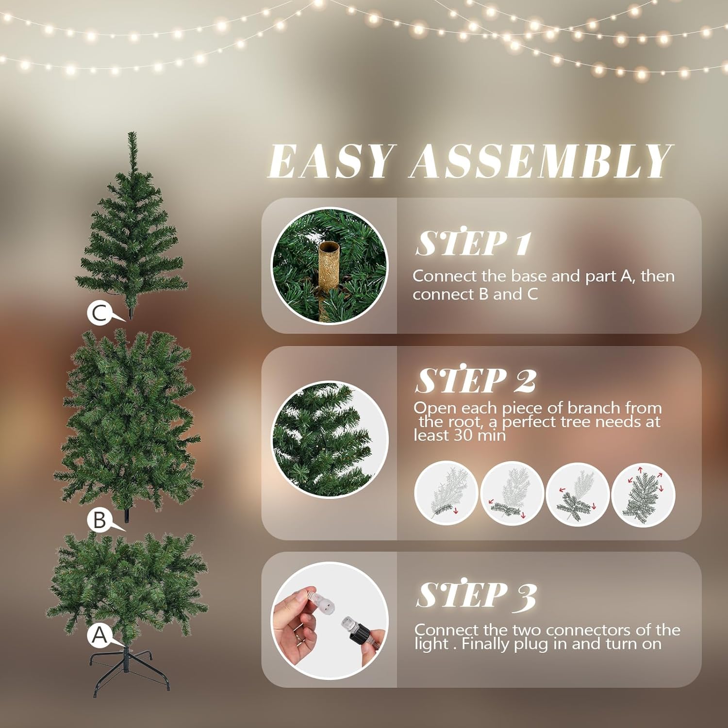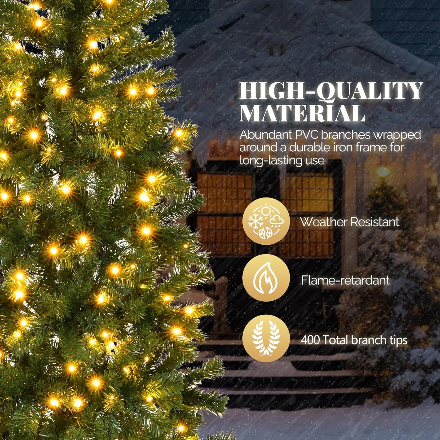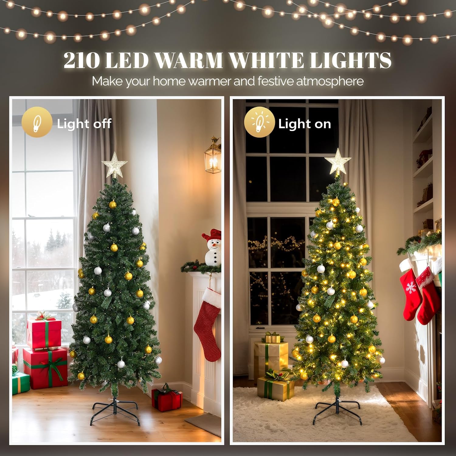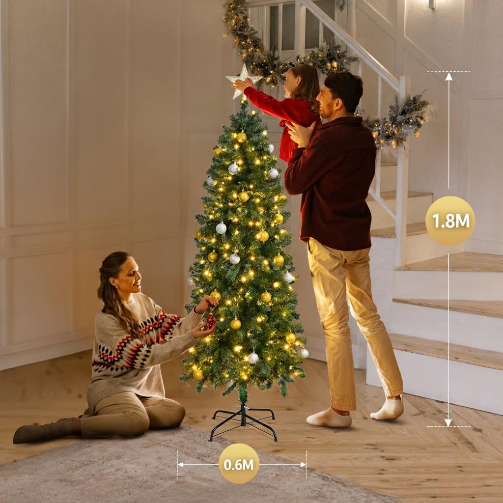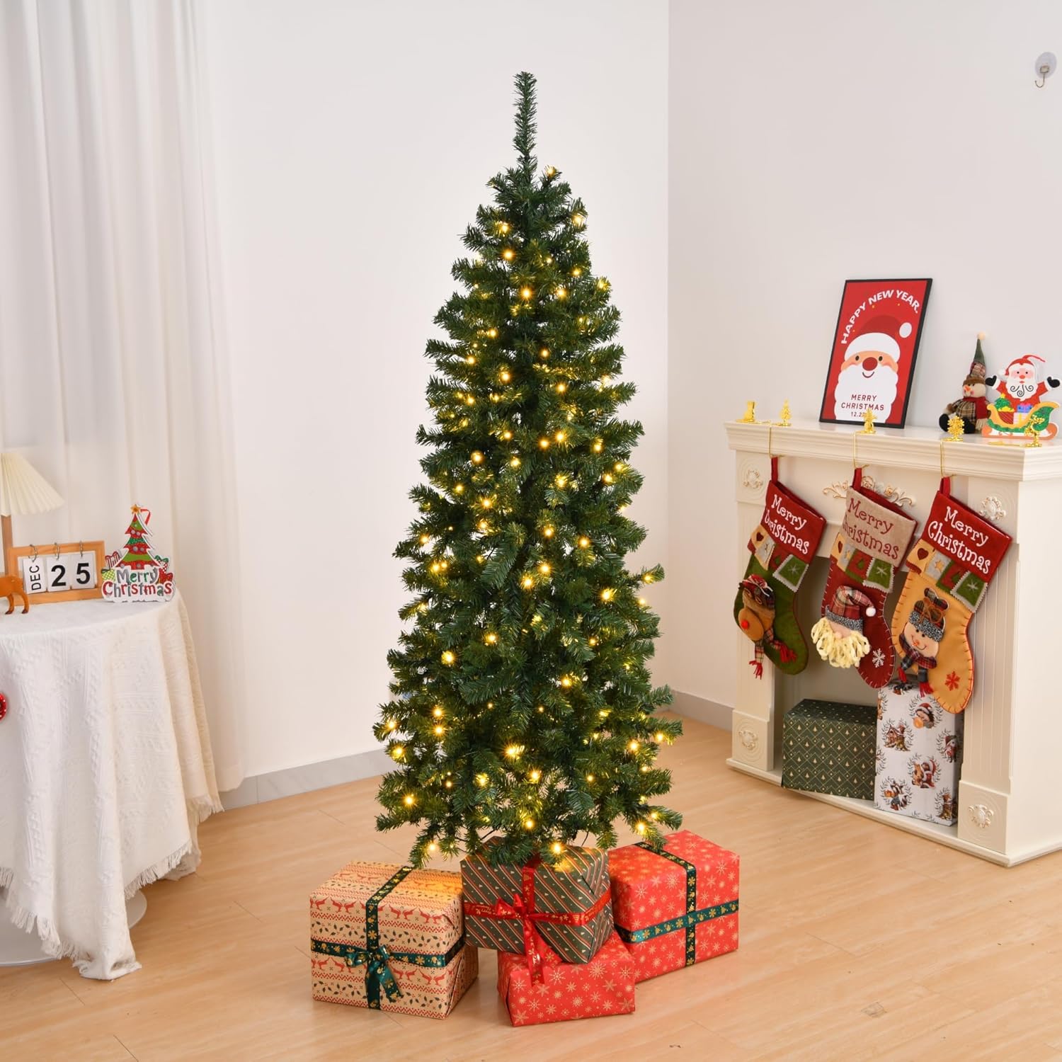Pencil Slim Christmas Tree with Lights 4/5/6/7FT Xmas Artificial Home Pine Decor