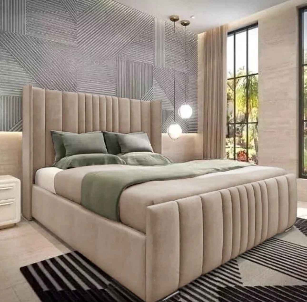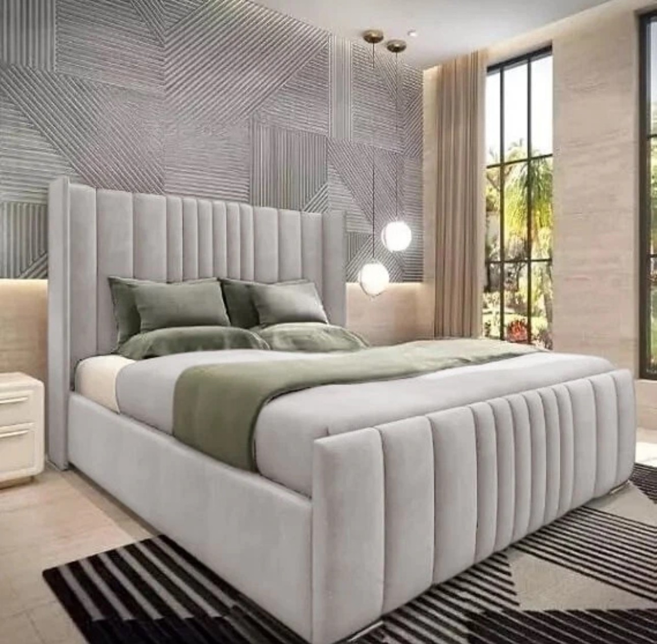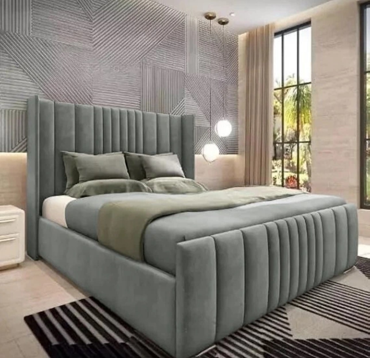 Ottoman Winged Bed Gas Lift Storage Plush Velvet Divan Double & King Size Bed