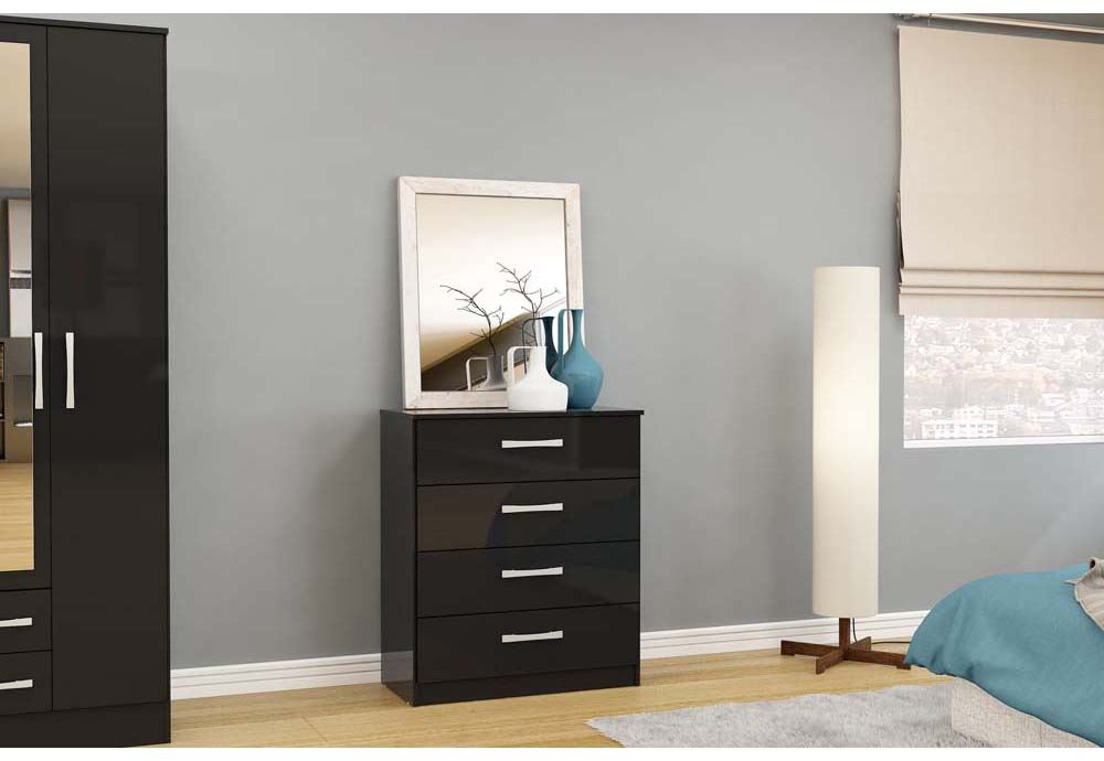 Lynx - Gloss 4 Drawer Chest - Black - Wooden - Happy Beds