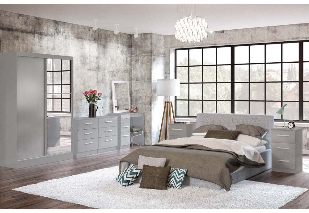 Lynx White & Grey Gloss Bedroom Furniture Wardrobe Chest Bedside by Birlea