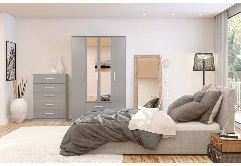 Birlea Lynx 4 Door 2 Drawer Wardrobe With Mirror in Grey Grey