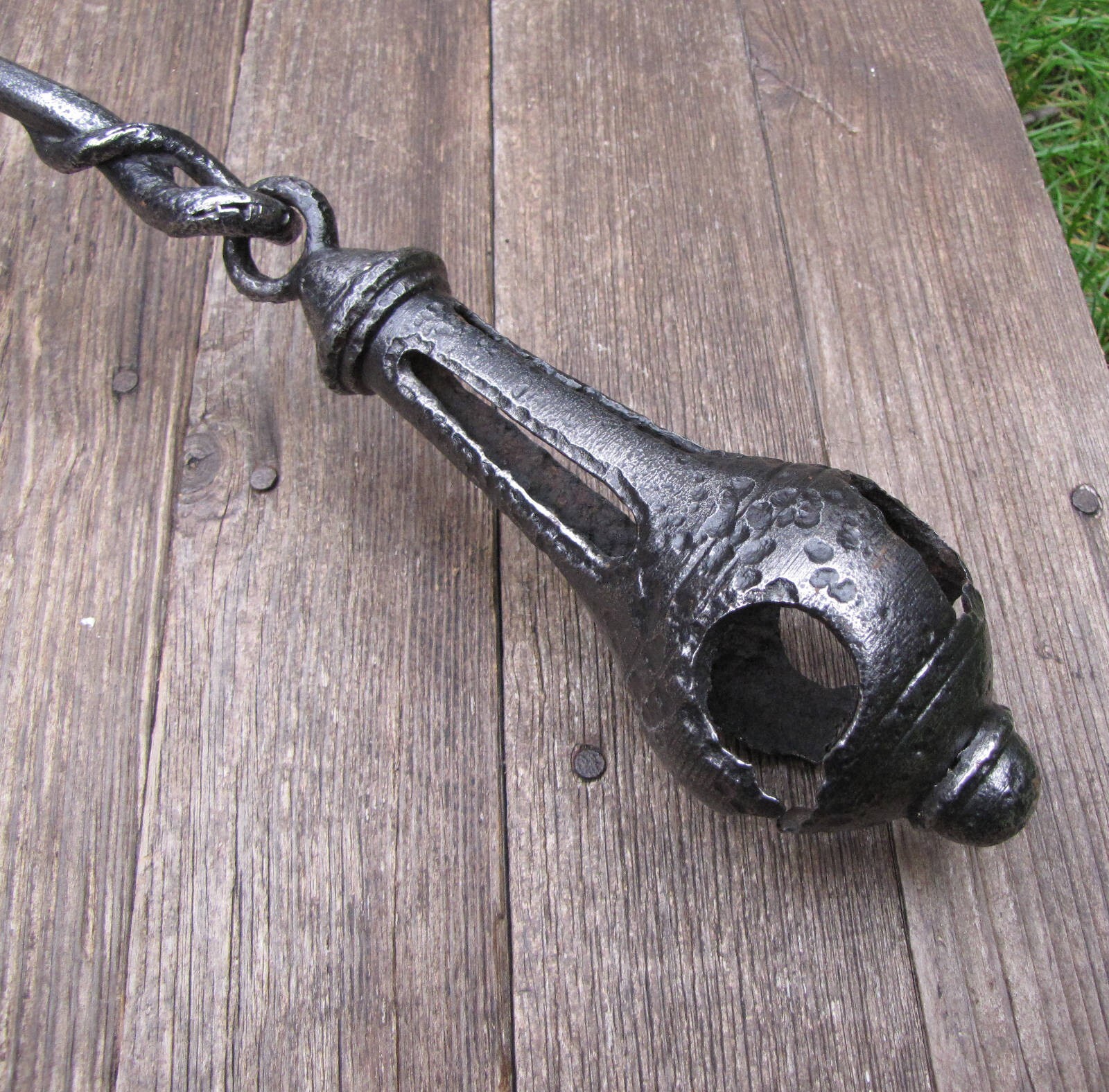 A stunning piece of door furniture. Parts of the pull handle have corroded away over the years. Still in good solid shape. The door bell has since been cleaned up and looks fantastic. It will need connecting to a bell, pulley and spring system.