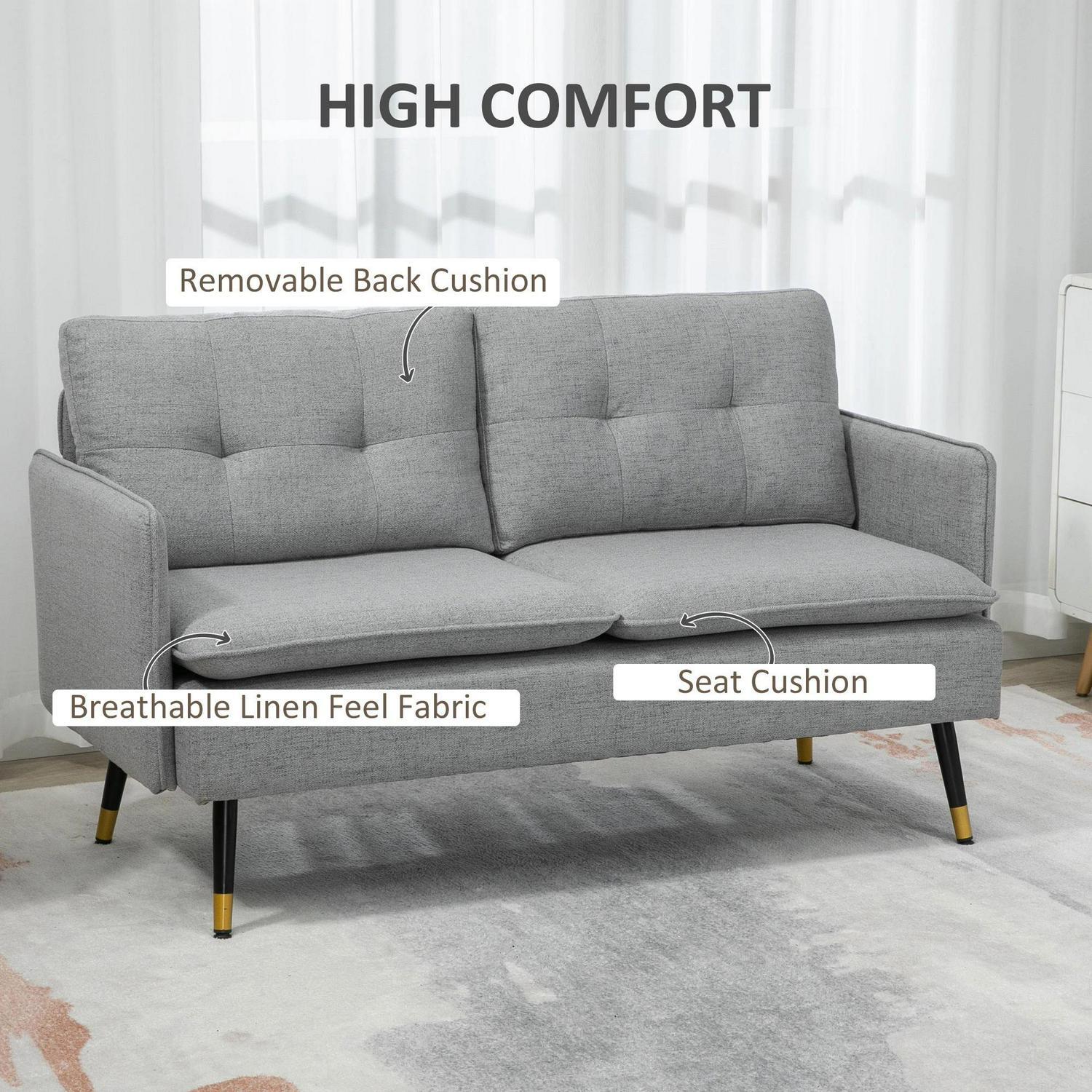 HOMCOM 2-Seat Loveseat Sofa Chenille Fabric Upholstered Couch Wood Legs, Grey