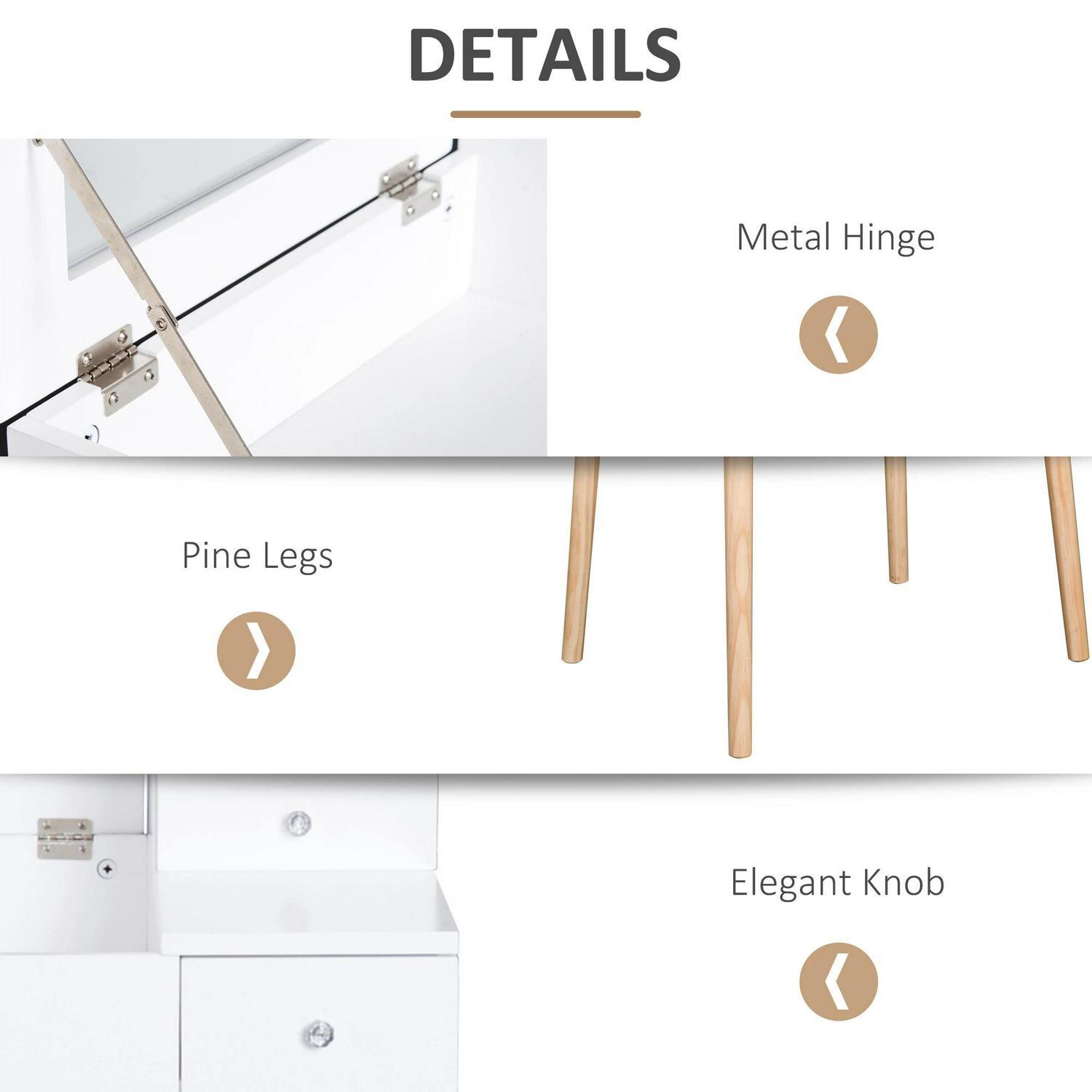 HOMCOM Dressing Table Set Flip up Mirror Stool Drawer & Compartments in White White