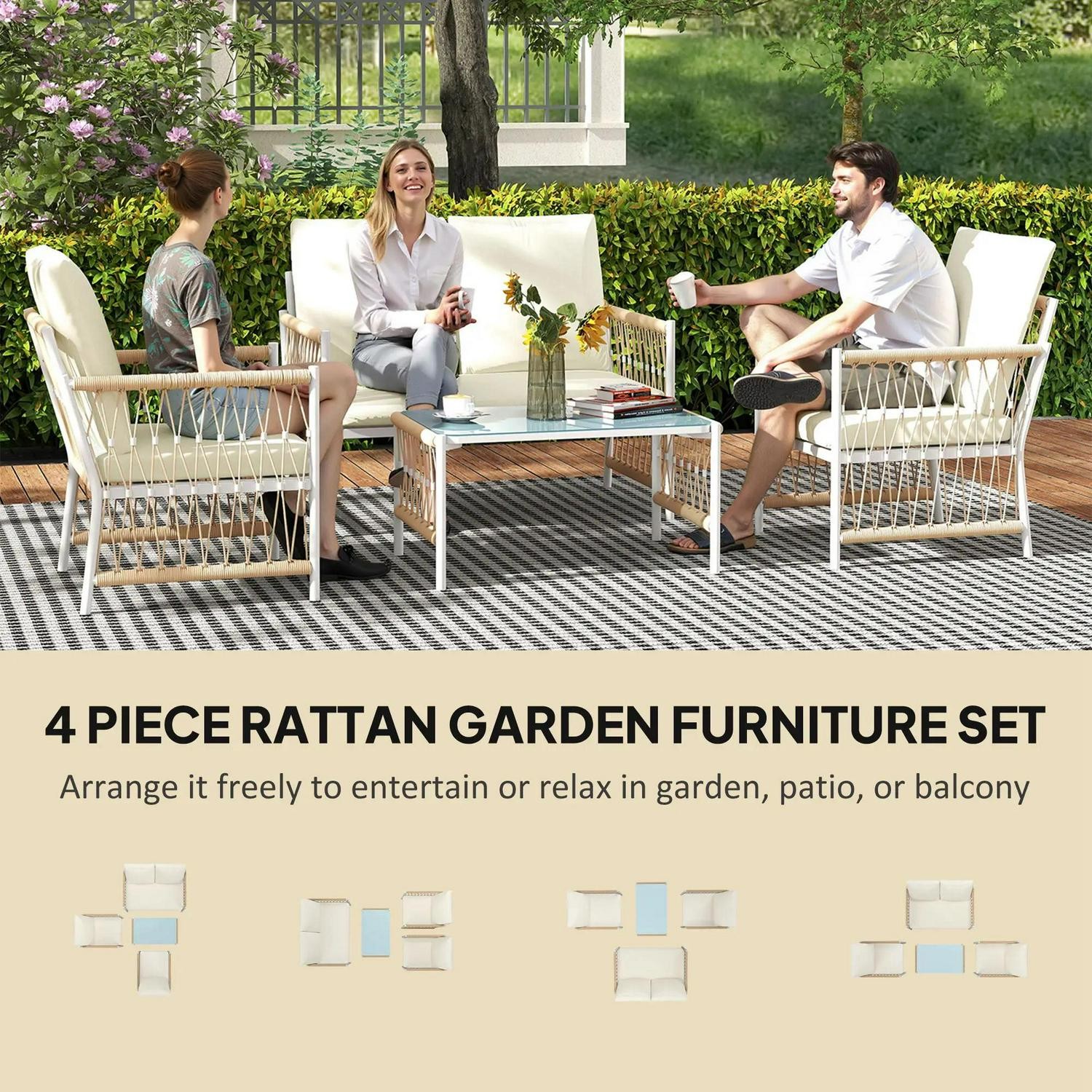 Outsunny 4 Pcs Rattan Garden Furniture Set, 4 Seater Patio Conversation, Khaki