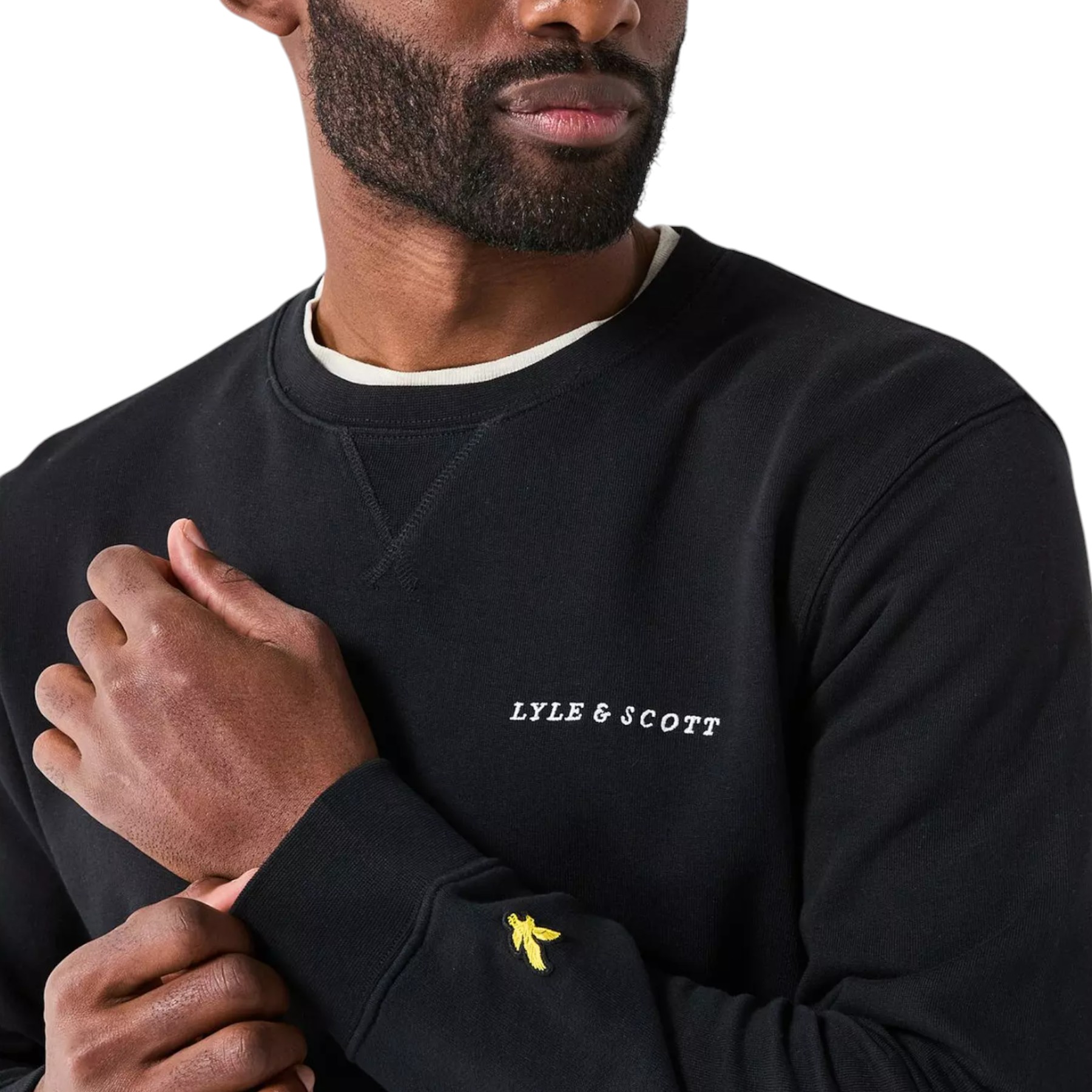 Lyle & Scott Mens Sweatshirt Loopback Jumper - Black Cotton - Size Medium