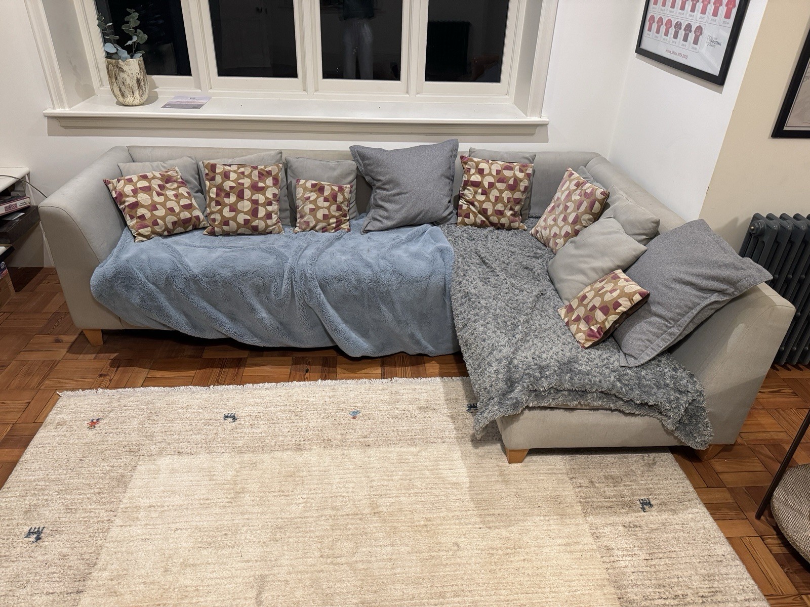 Furnishings For Less UK Mellors Pewter Grey or Stone Beige Chenille 5 Seater Corner Sofa L Shaped 2 Corner 2 Scatter Back in Charcoal Charcoal
