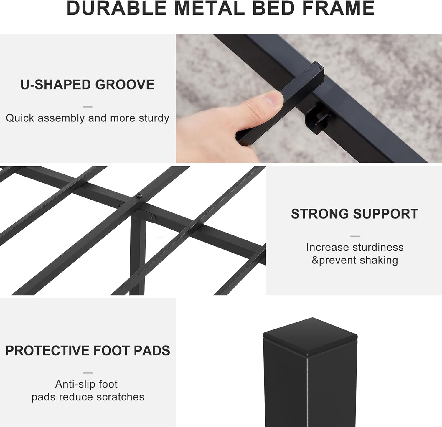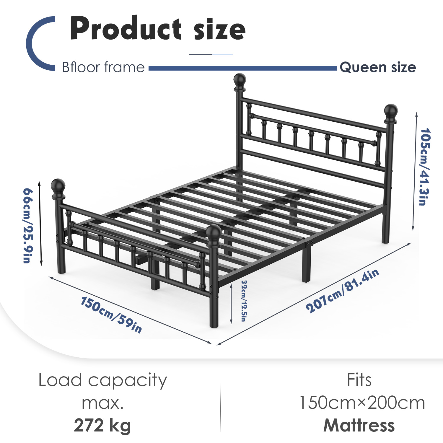 Heavy Duty Bed Frames with Headboard and Footboard, 3/4.6/5FT Metal Platform Cxy