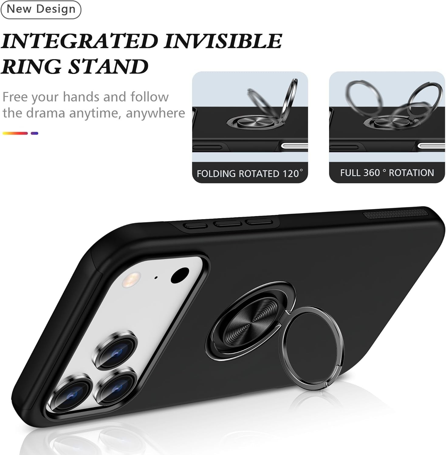 This360° Rotation Magnetic Ring Case gives youprotection, style, and functionality in one. Keep your iPhone protected and practical with thisall-in-one magnetic case. Perfect Fit: Precisely cut to fit iPhone 17, 17 Air, 17 Pro, and 17 Pro Max with easy access to all buttons and ports.