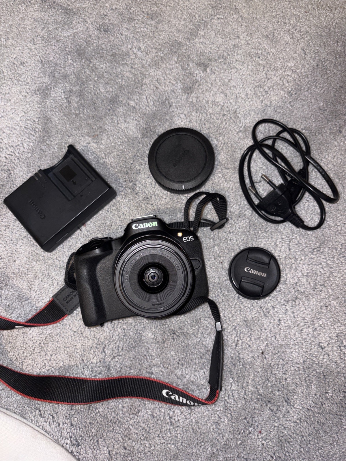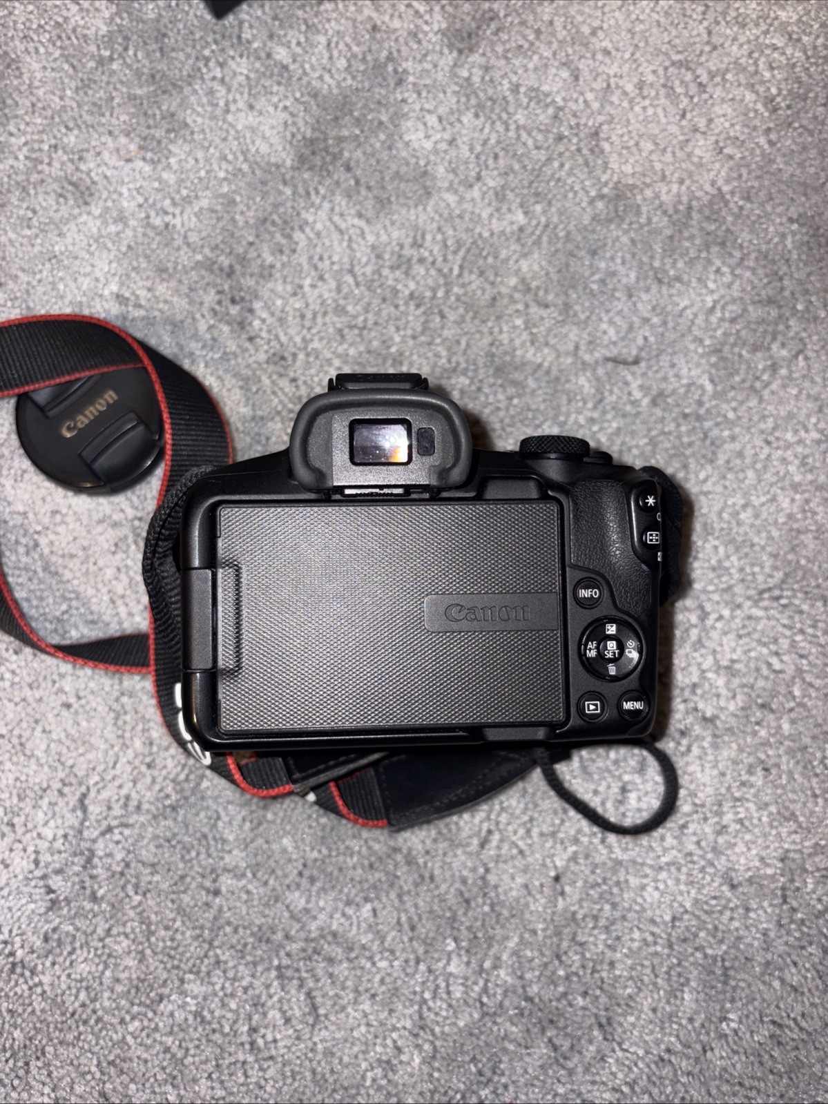 In perfect working condition Comes with: Camera Body 18-45 Lens Lens case Lens cap Battery charger and lead The Canon EOS R50 Mirrorless Digital Camera is a high-quality camera from the Canon EOS series, featuring a maximum resolution of 24.2 MP. It comes with a lens case, battery charger, and a 3-inch screen for easy viewing. This camera is perfect for photography enthusiasts who want a compact and lightweight camera that delivers stunning images. With connectivity options like Micro-HDMI and USB-C, it also offers 4K video recording capabilities for added versatility in capturing your memories. The sleek black design adds a professional touch to your photography gear.