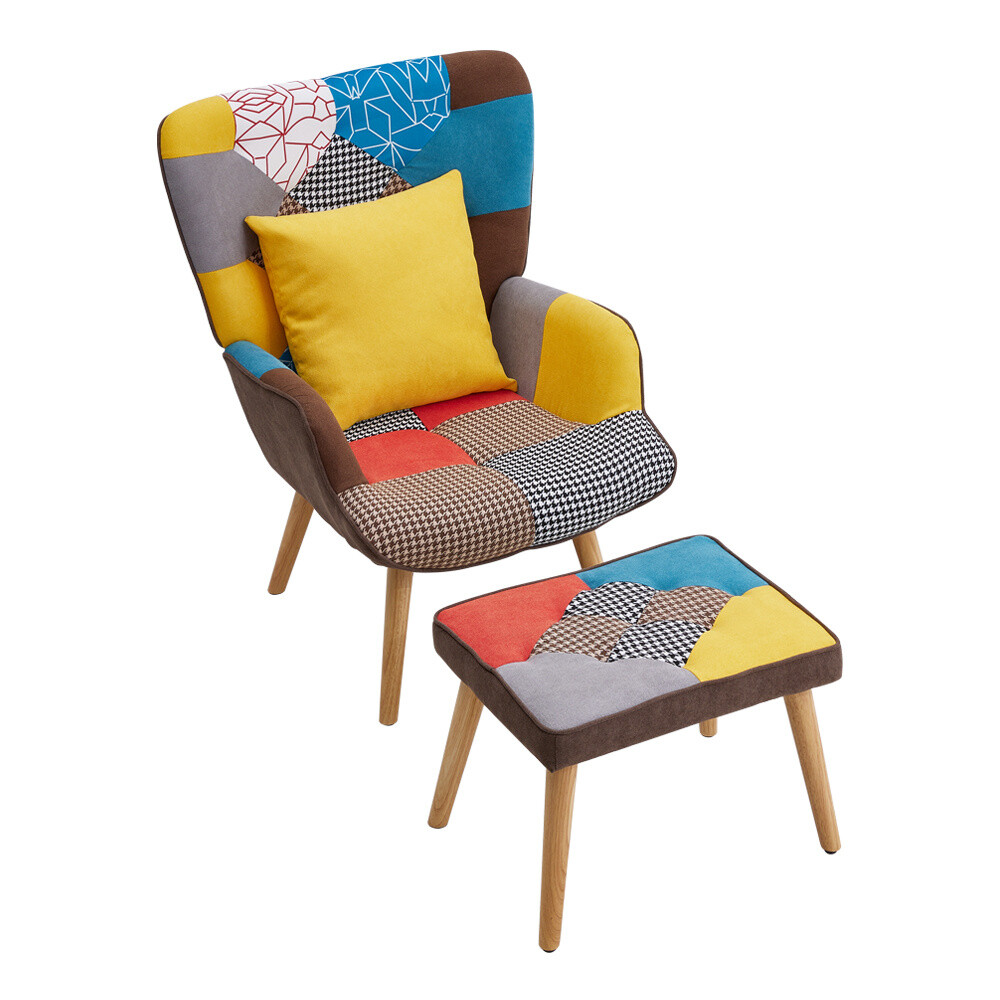 Patchwork Fabric Armchair Upholstered High Back Chair Button Wing Back Sofa UK