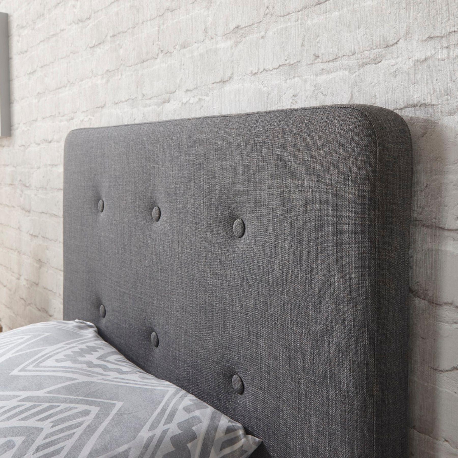 Dudley - Single - Lined Headboard - Dark Grey - Fabric - 3ft - Happy Beds