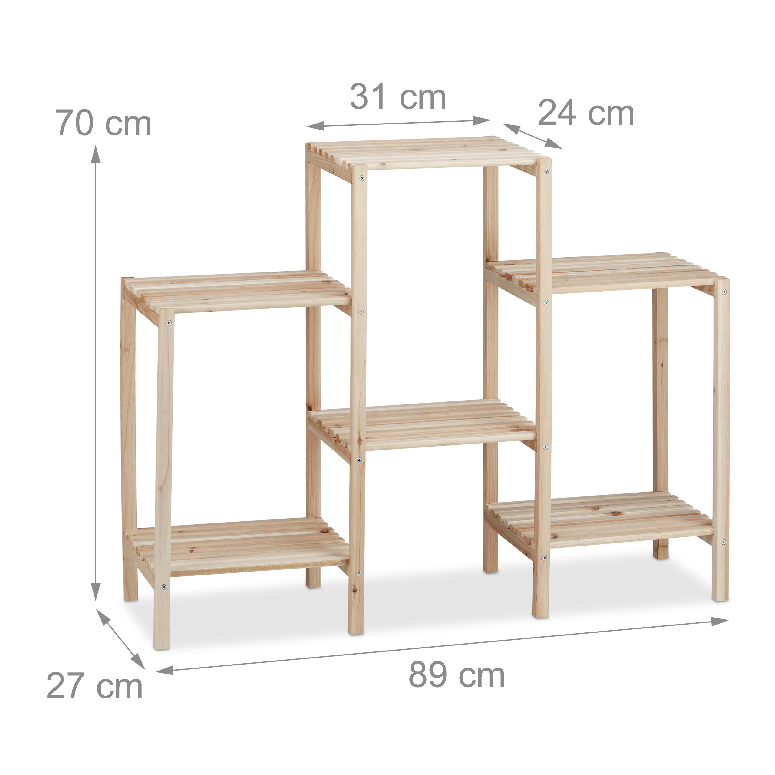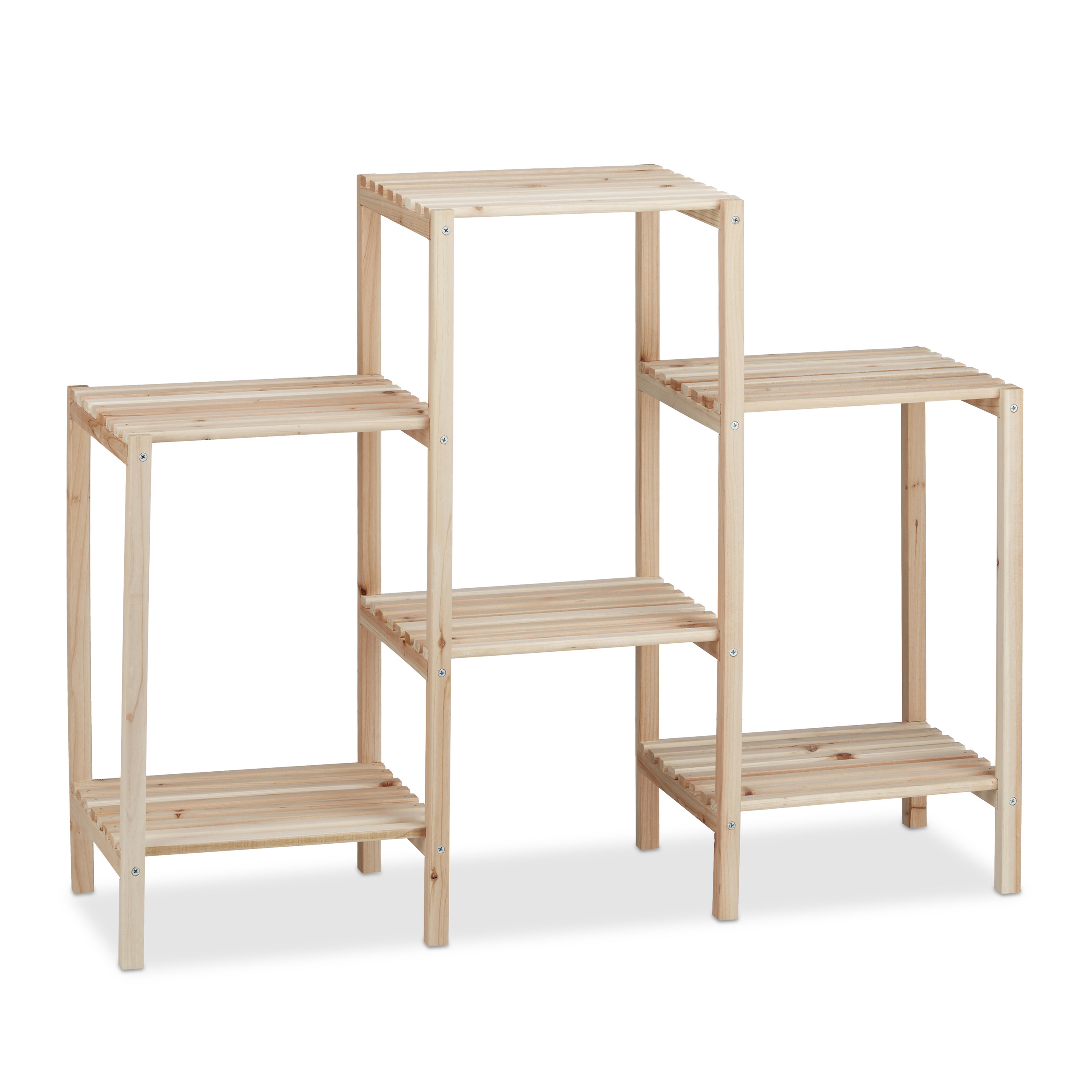 Relaxdays - Flower Staircase, 3-Tier Ladder Rack, Adjustable Wooden Plant Stand, Shelf Height 57 cm, Natural