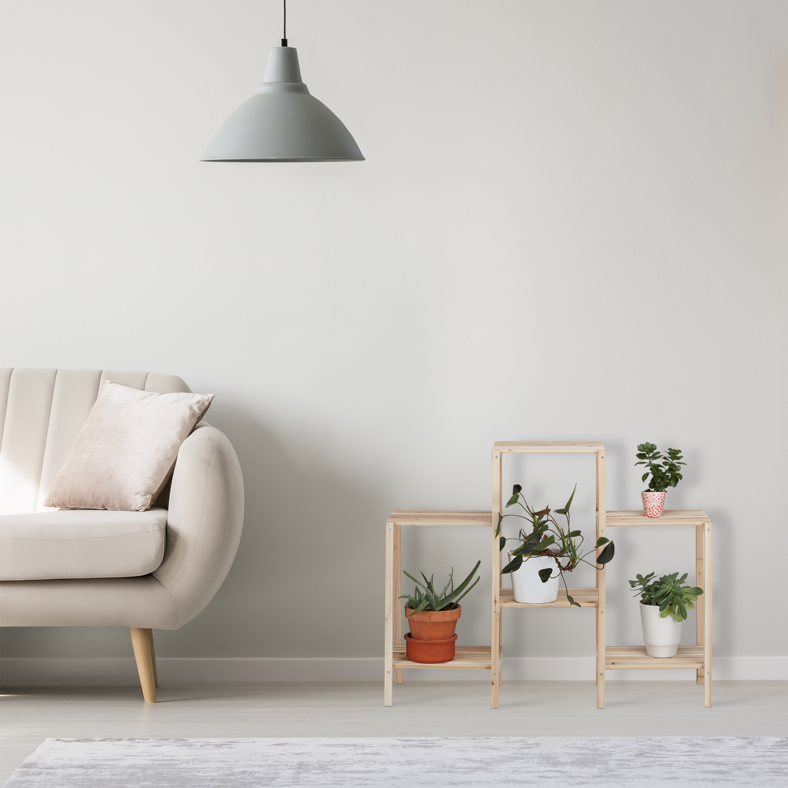 Relaxdays - Flower Ladder Rack with 3 Tiers, Wooden, Flower Stand for Indoors, Multi-Tier, HxWxD: ca 82.5 x 83 x 28.5 cm, Light Brown