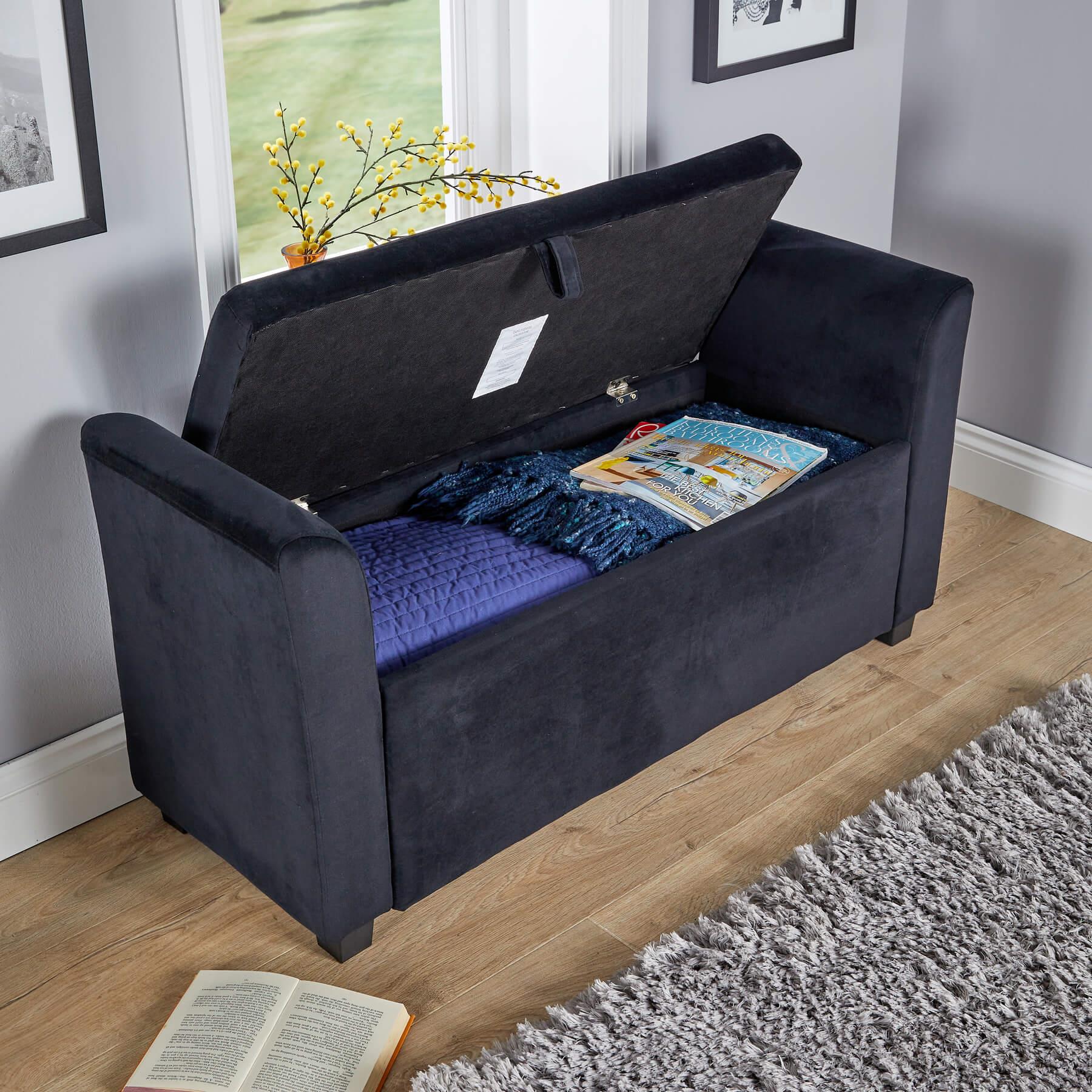 Large Ottoman Seat Storage Footstool Box Velvet Toy Trunk Chest Lid Window Bench