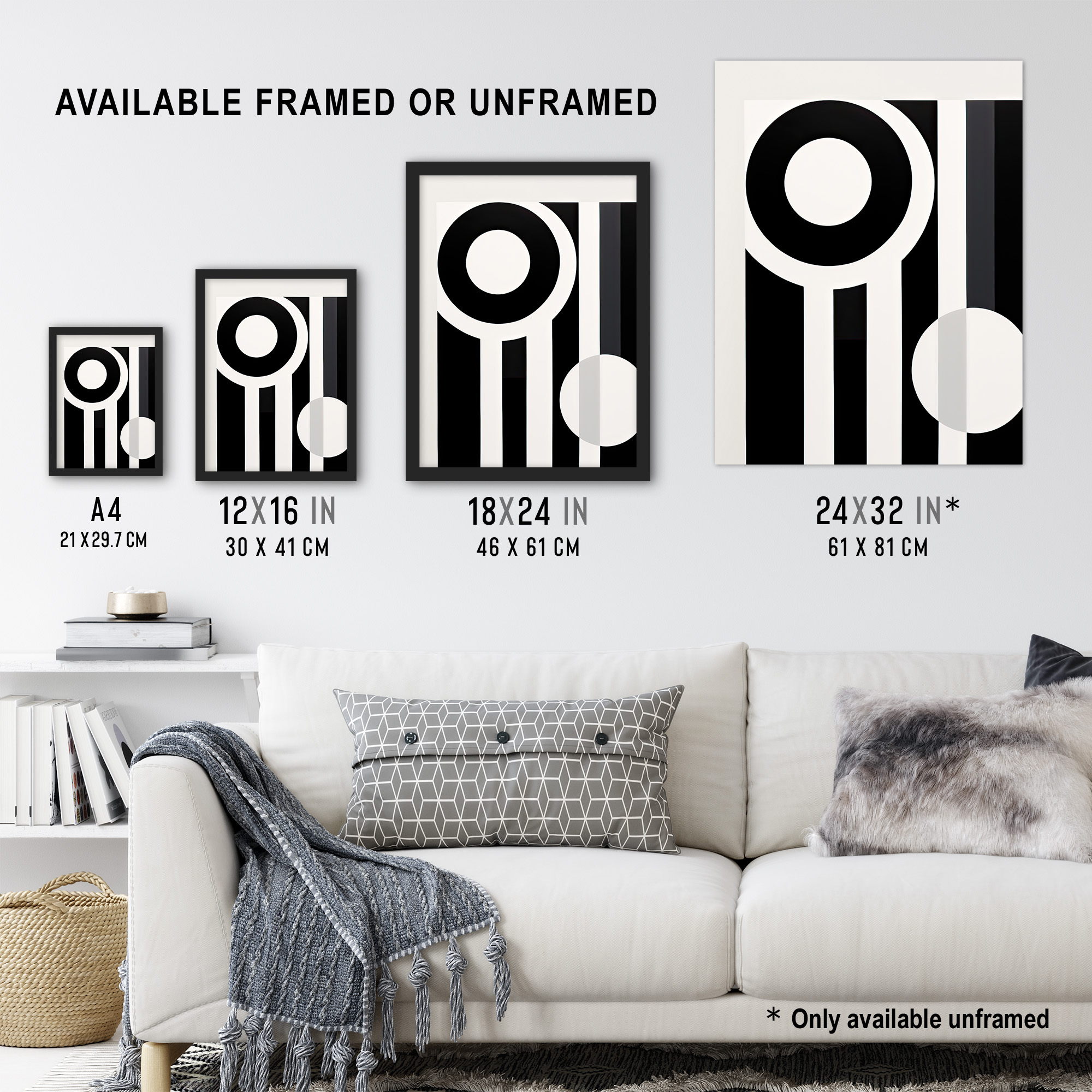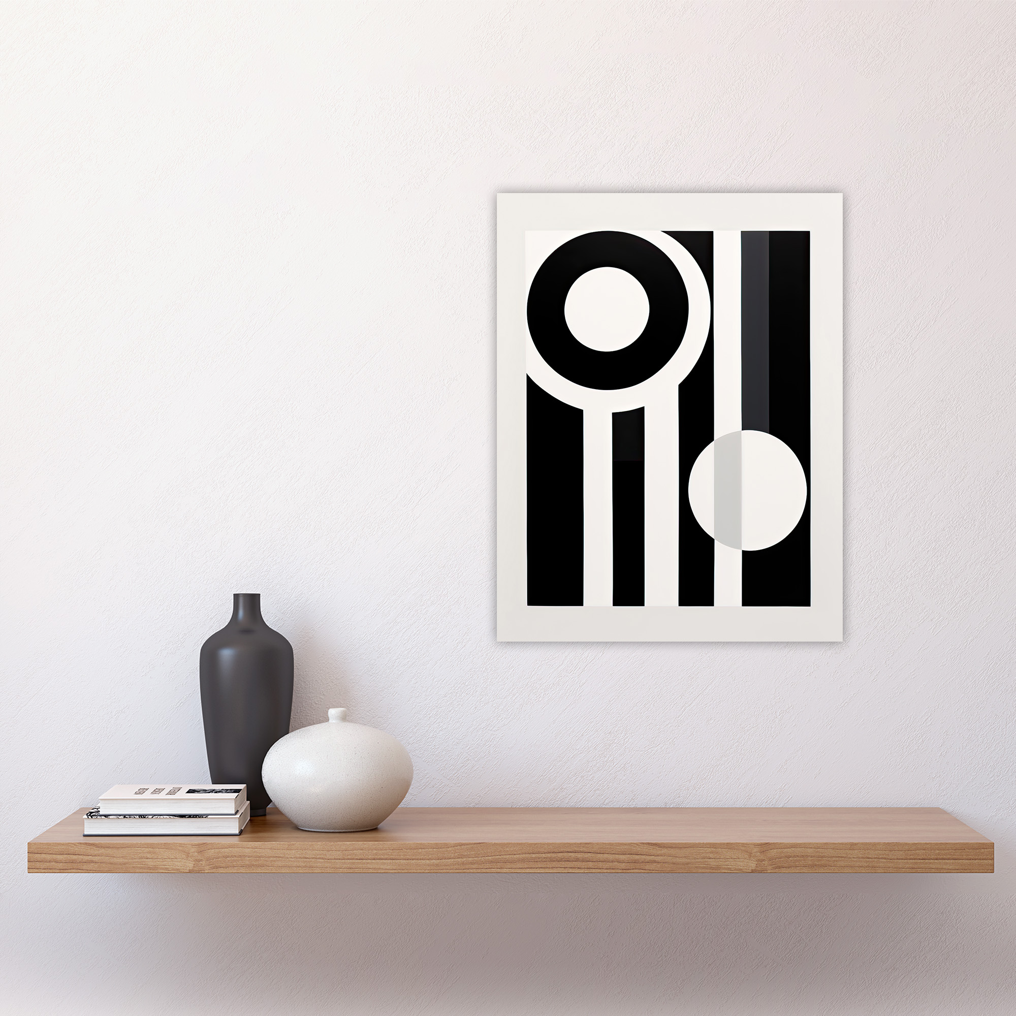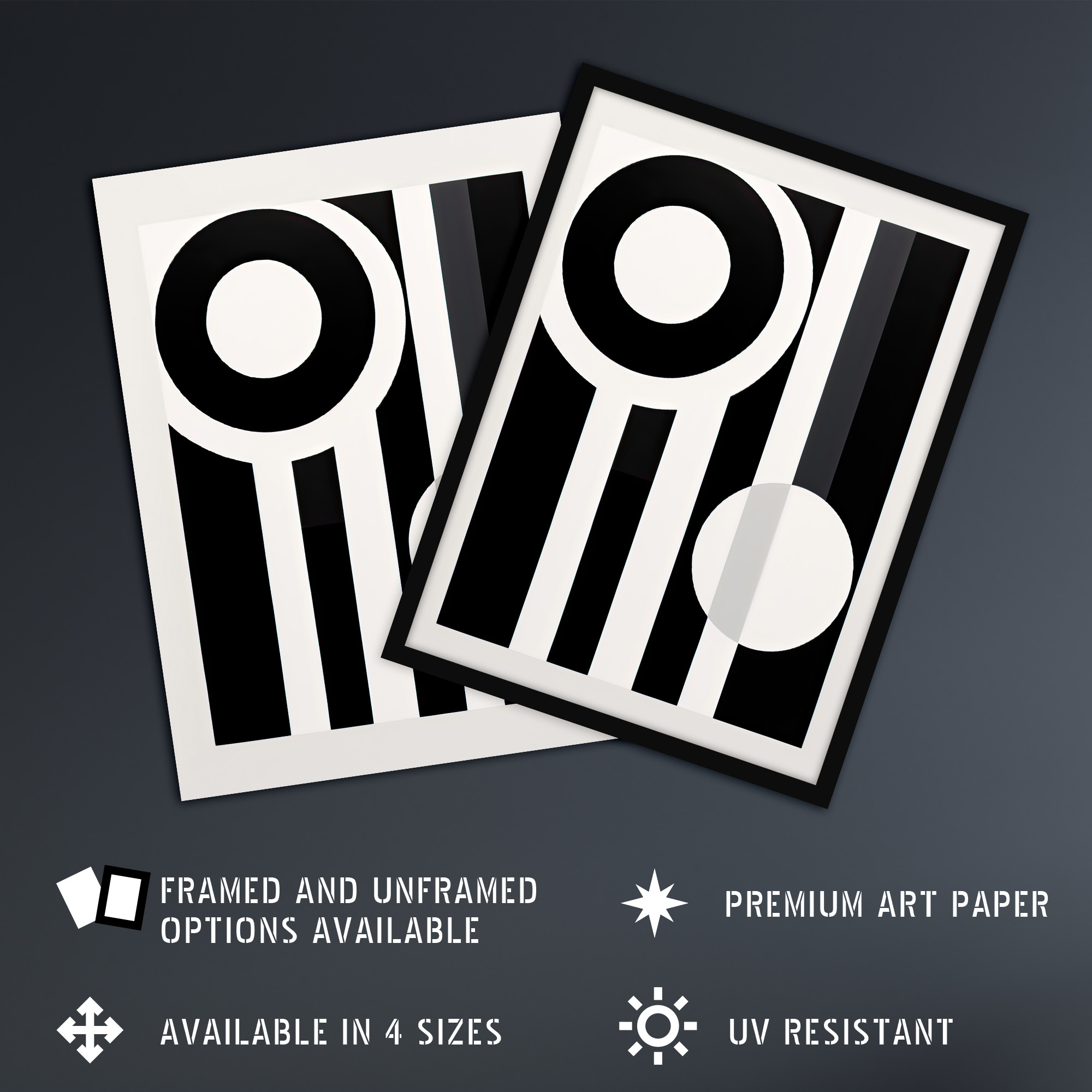 Artery8 Wall Art Print Abstract Geometric Black White Minimalist Circles Stripes Poster Size: W12" x H16" Black W12" x H16"