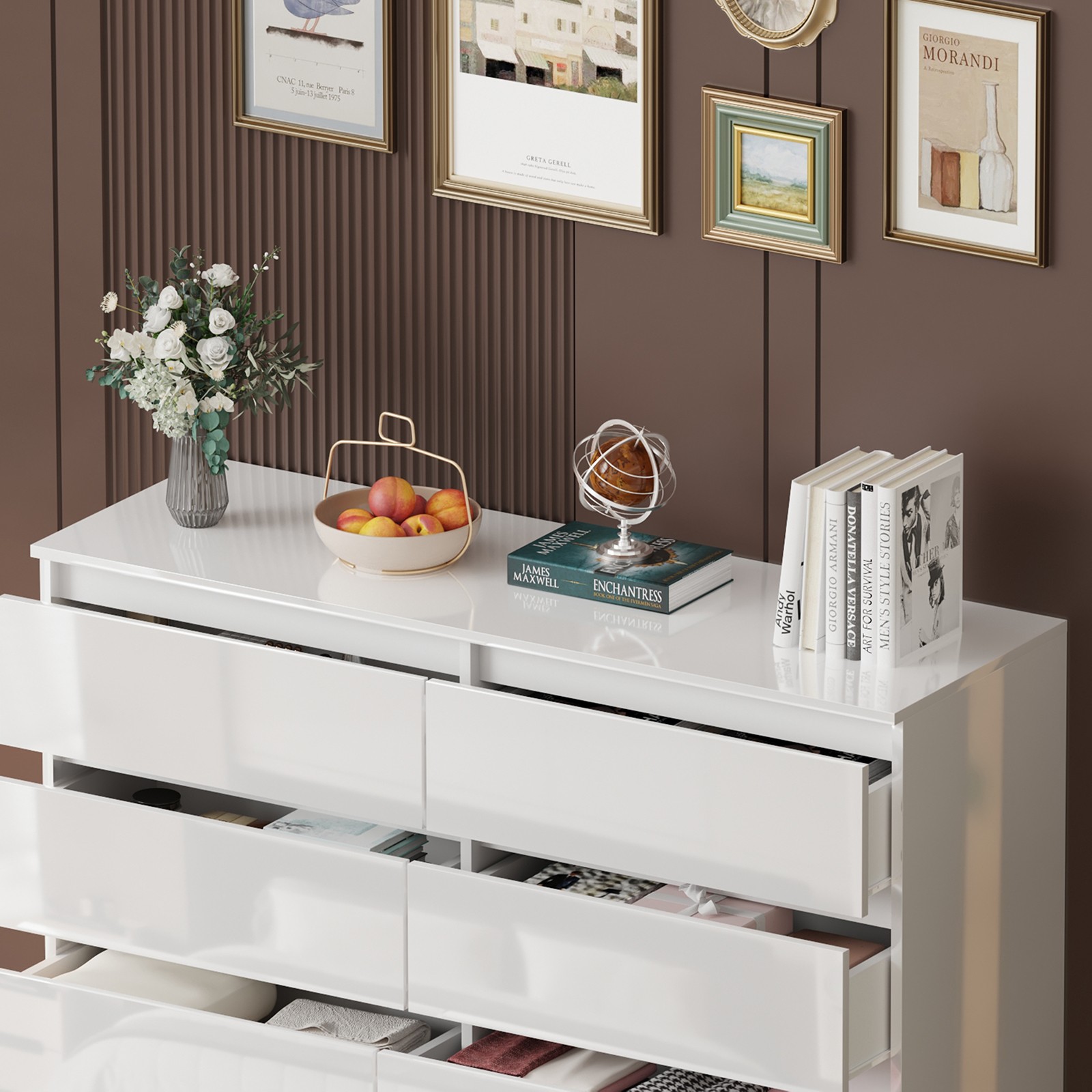 120CM6 7 8 Drawers High Gloss Chest Of Drawers Bedside Cabinet Tall Wide Storage