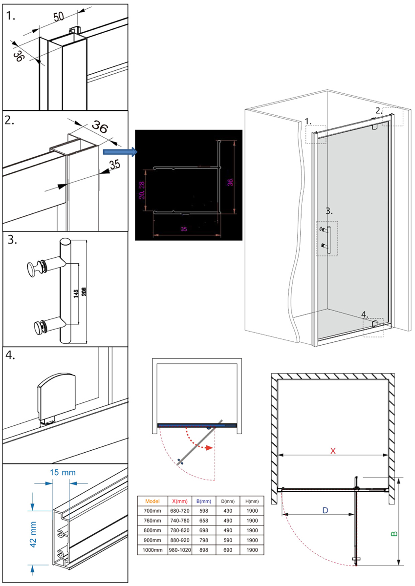 Luxura Pivot Shower Door 900mm with 900 x 900mm Non Slip Tray and Waste - 6mm Black
