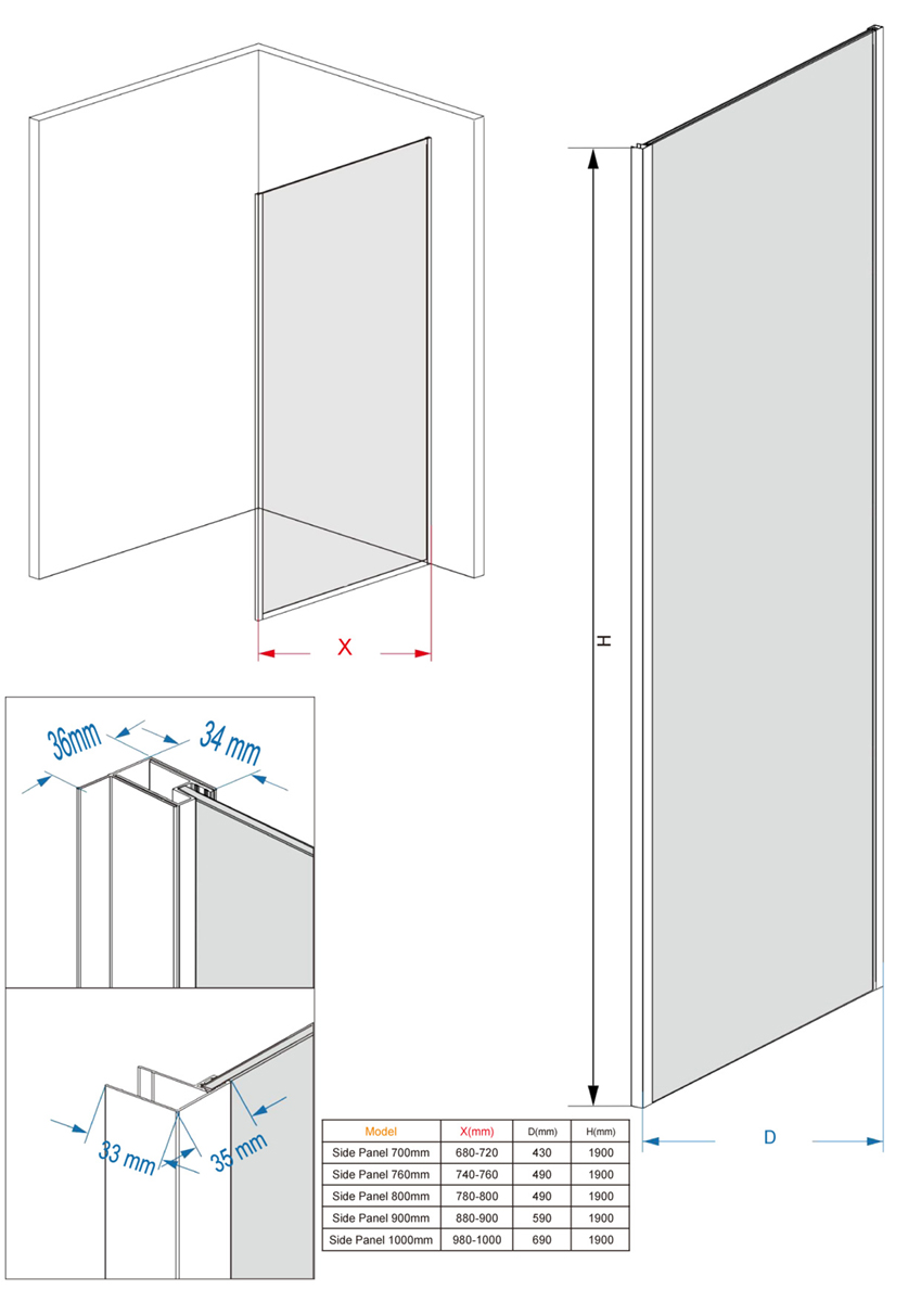 ShowerWorX Matt Black Pivot Door Shower Enclosure & Side Panel Modern Bathroom
