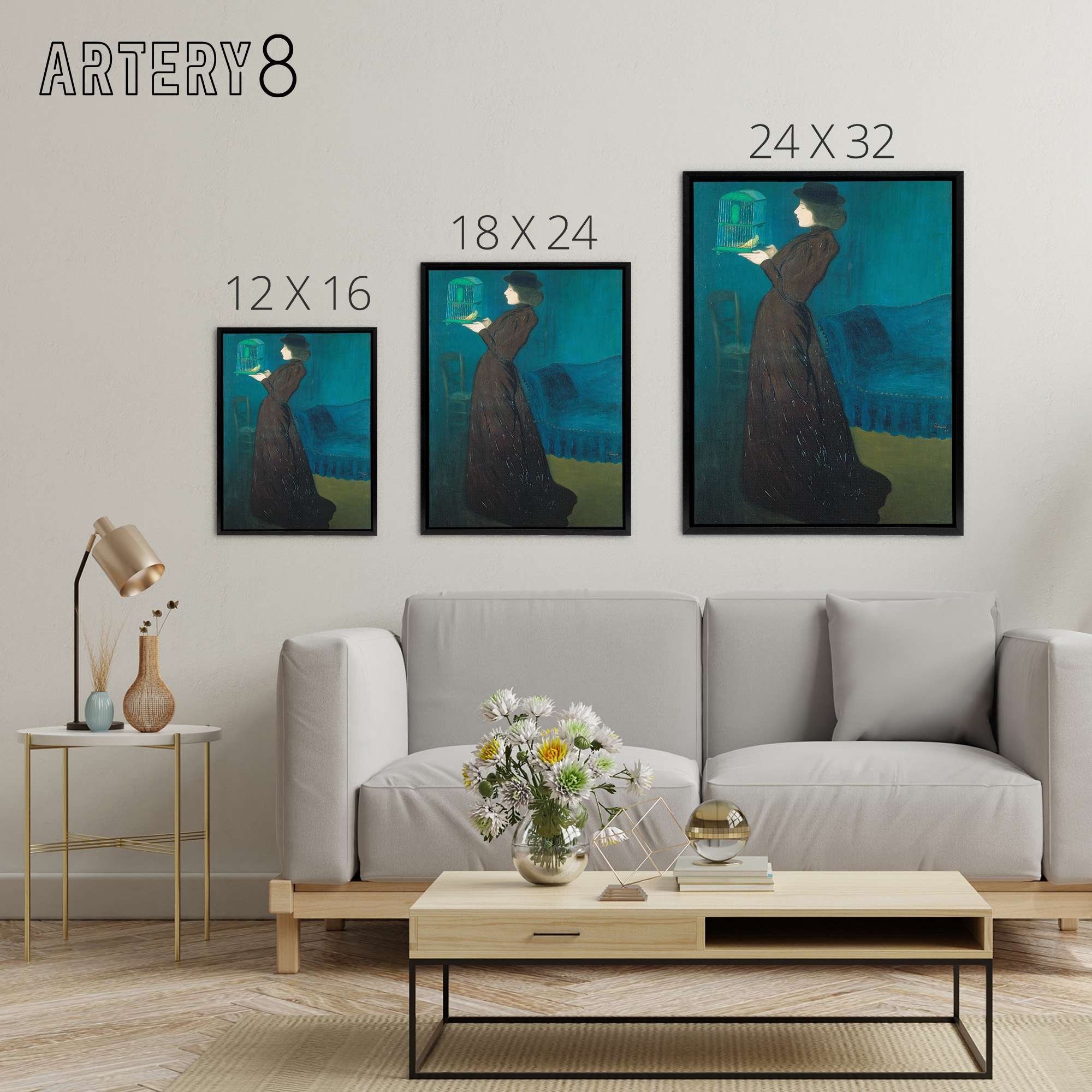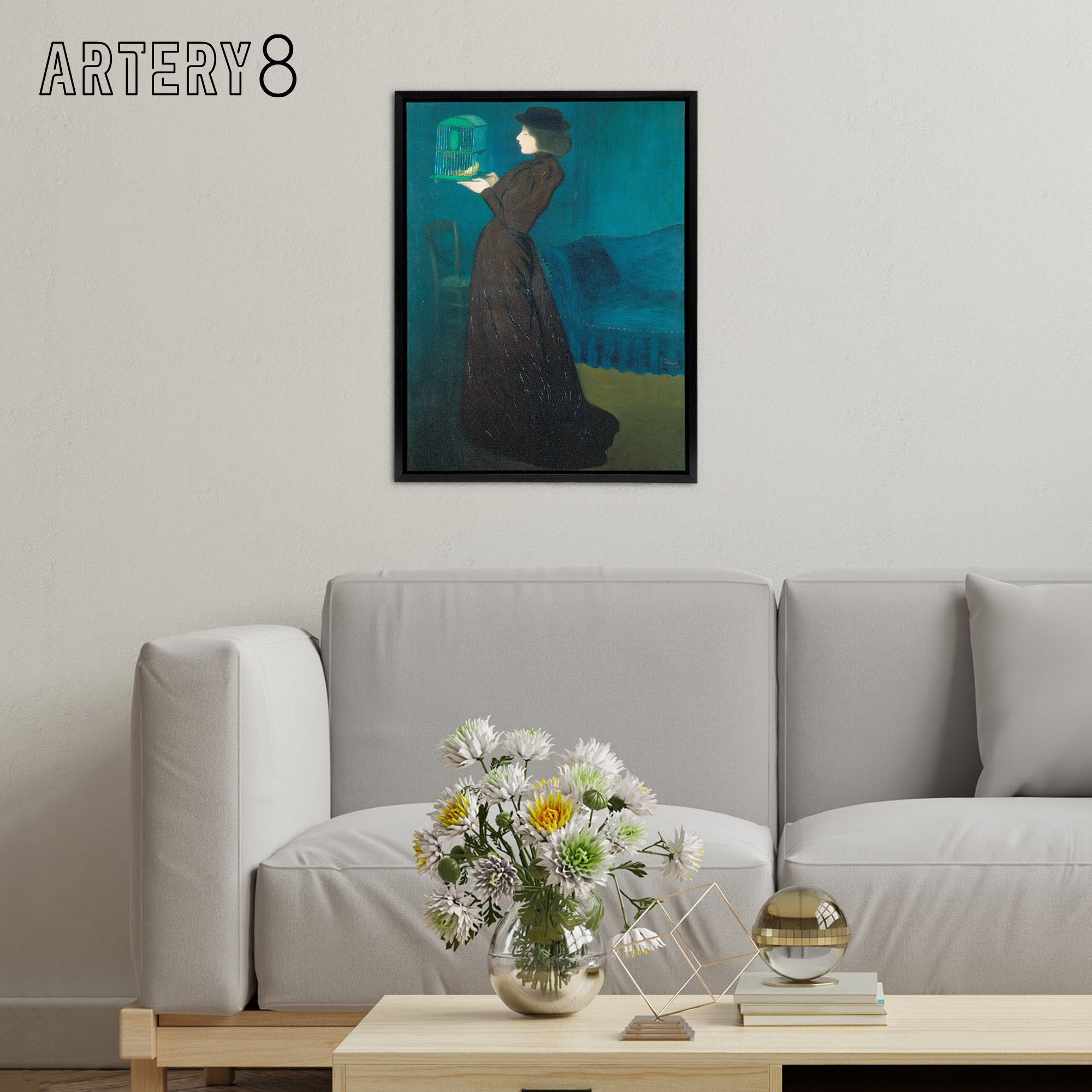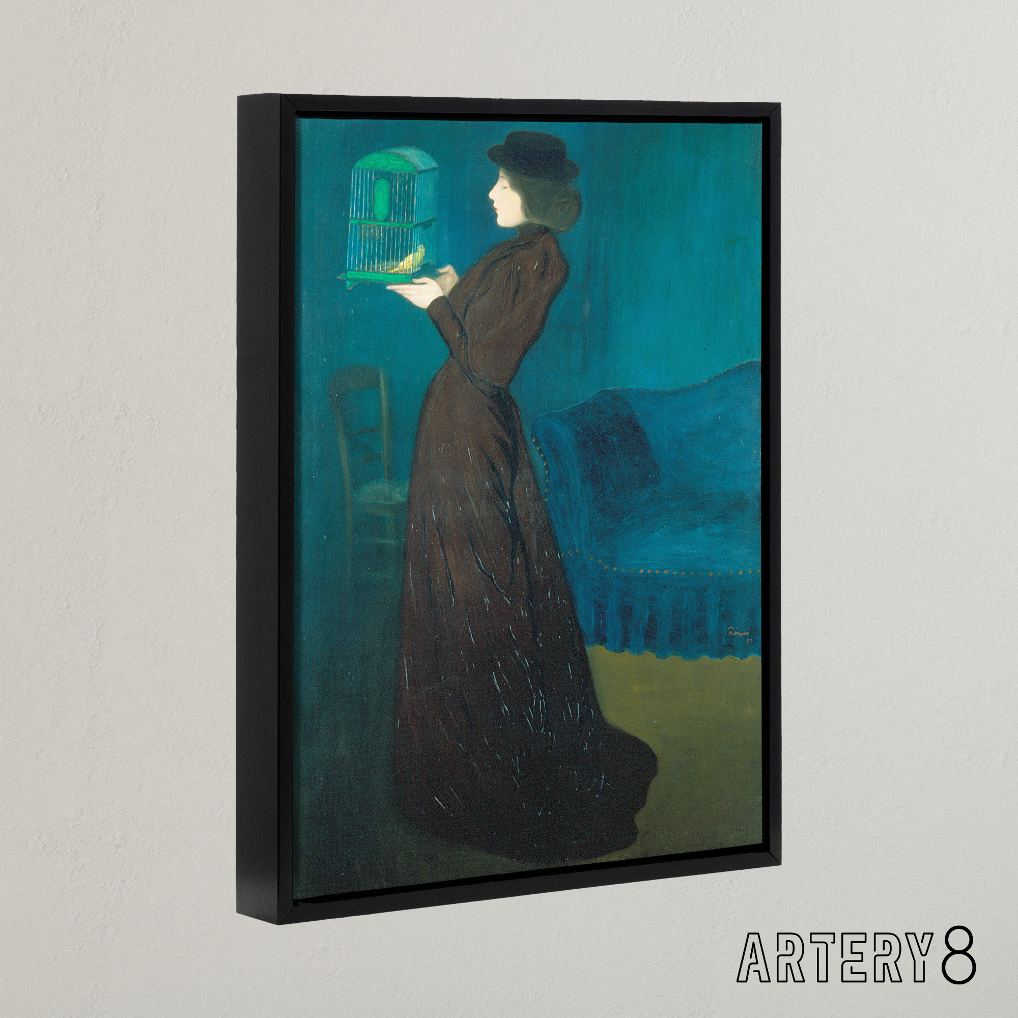 Artery8 Rippl Ronai Jozsef Woman With A Birdcage Canvas Wall Art Print in Blue Size: W24" x H32" Blue W24" x H32"