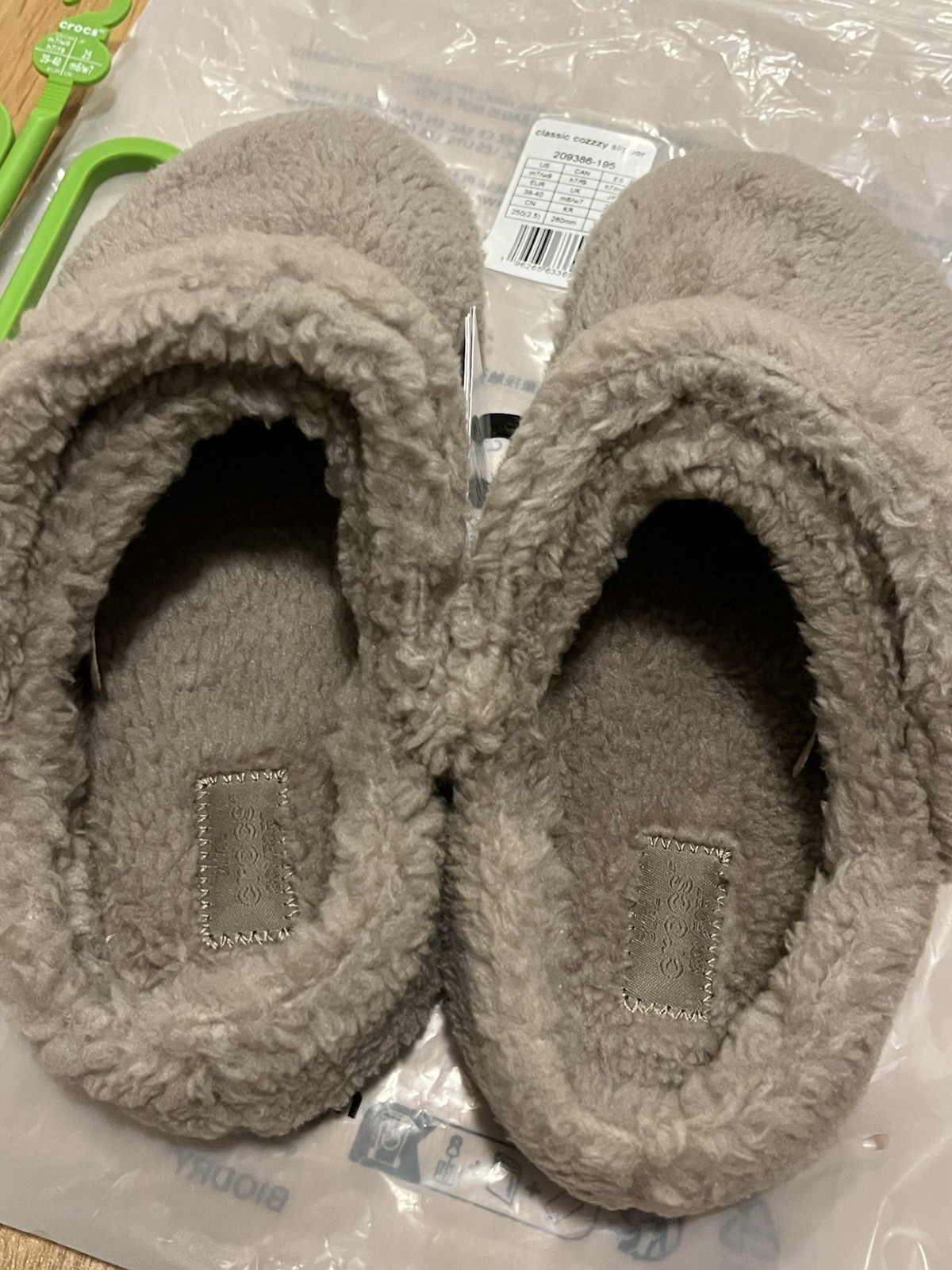 Crocs Classic Cozzzy Slipper Unisex UK Mens 5 Womens 6 Mushroom Colour Faux Fur