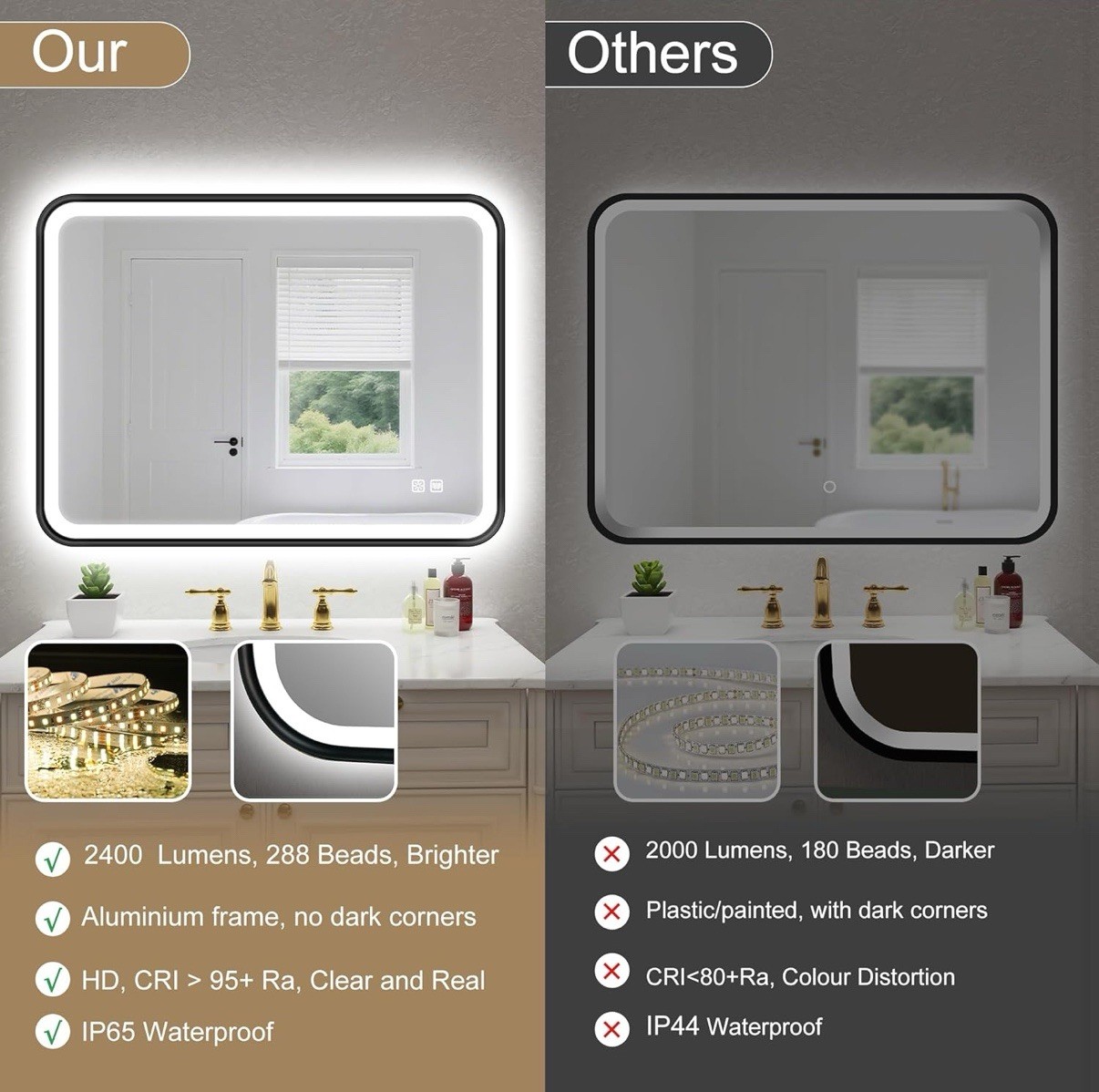 Bathroom Mirror Cabinet With LED Touch Switch Staorage Wall Mounted 2 Door
