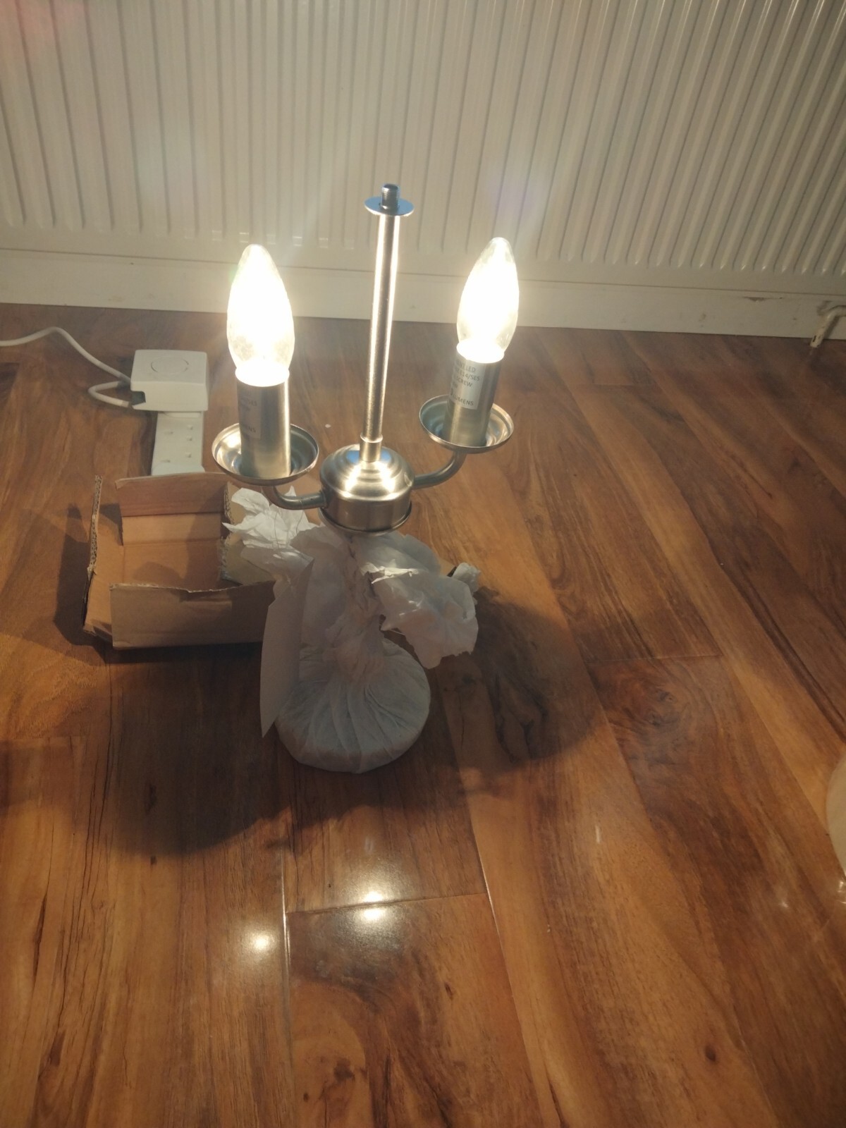 Table Lamp Vintage Brass Candlestick Style 2 Arm With Pleated Oval Shade