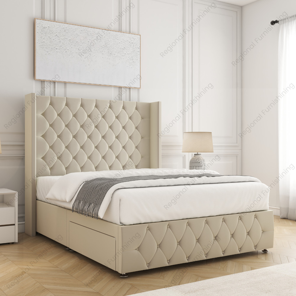 Ottoman Bed Winged Plush Velvet New York Divan Storage Double & King Size Bed