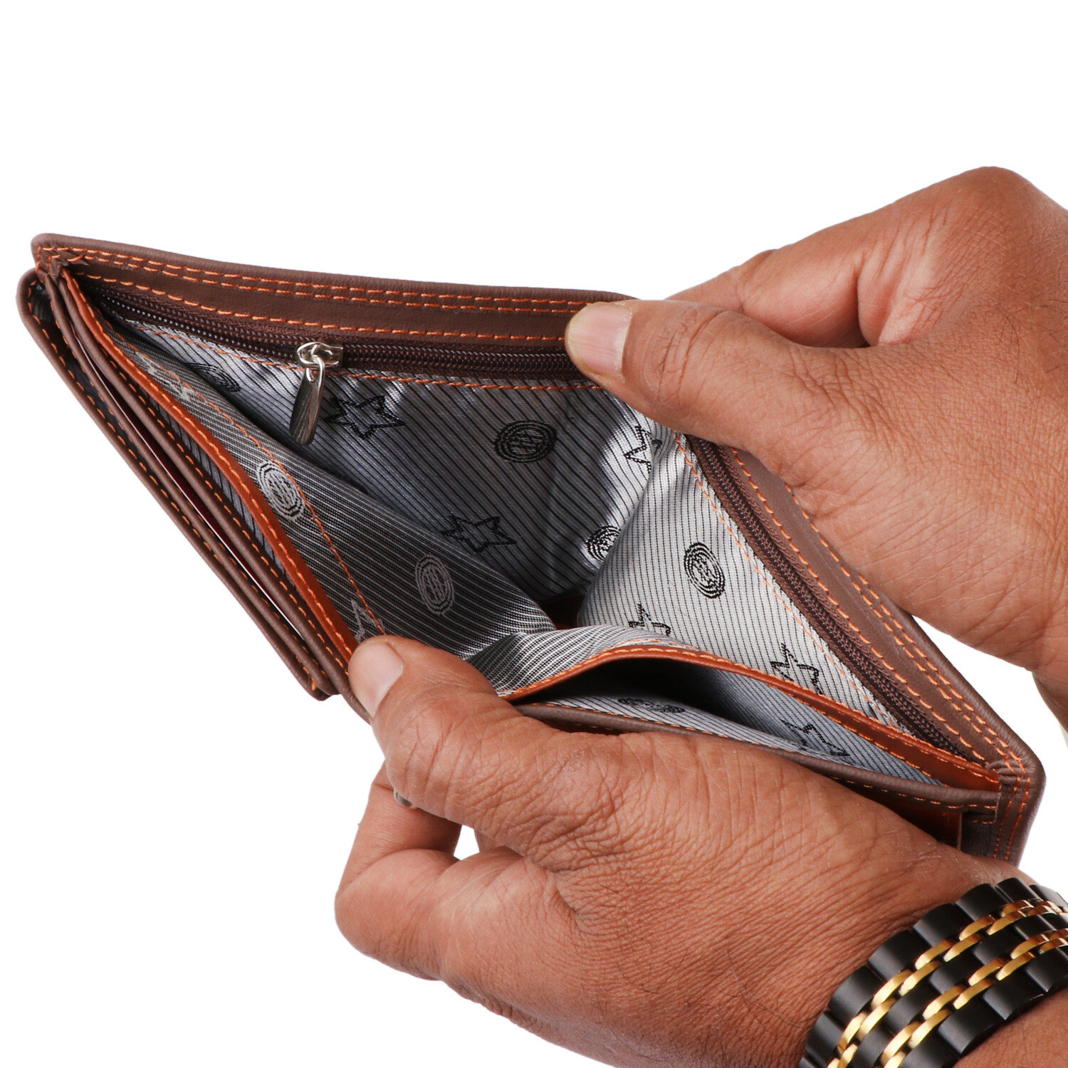 MORUCHA Mens RFID Blocking Real Soft Leather Passcase Wallet M75 Black Brown