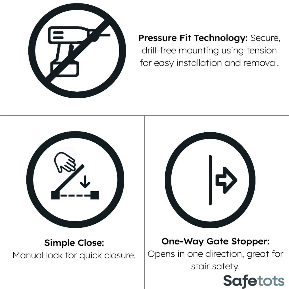 Bettacare - Auto Close Pet Gate, 89.4cm - 96.4cm, Matt Black, Pressure Fit Stair Gate for Dog & Puppy