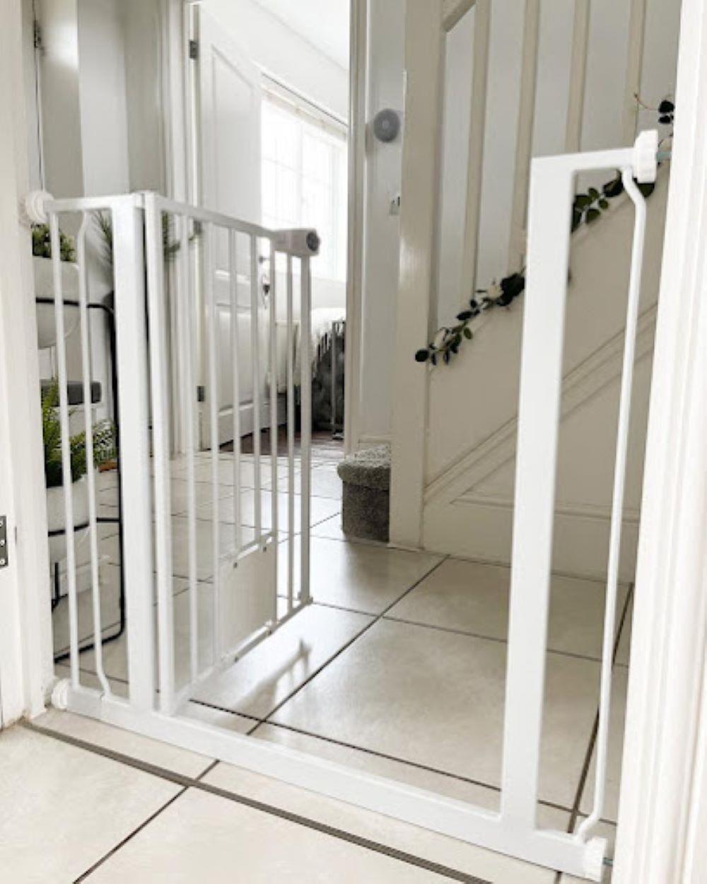 Latitude Run Extra Wide Hallway Dog Gate, Pressure Fit Pet Gate, Puppy Safety Barrier for Hallways and Wide Spaces, Easy Installation White 122-128 cm