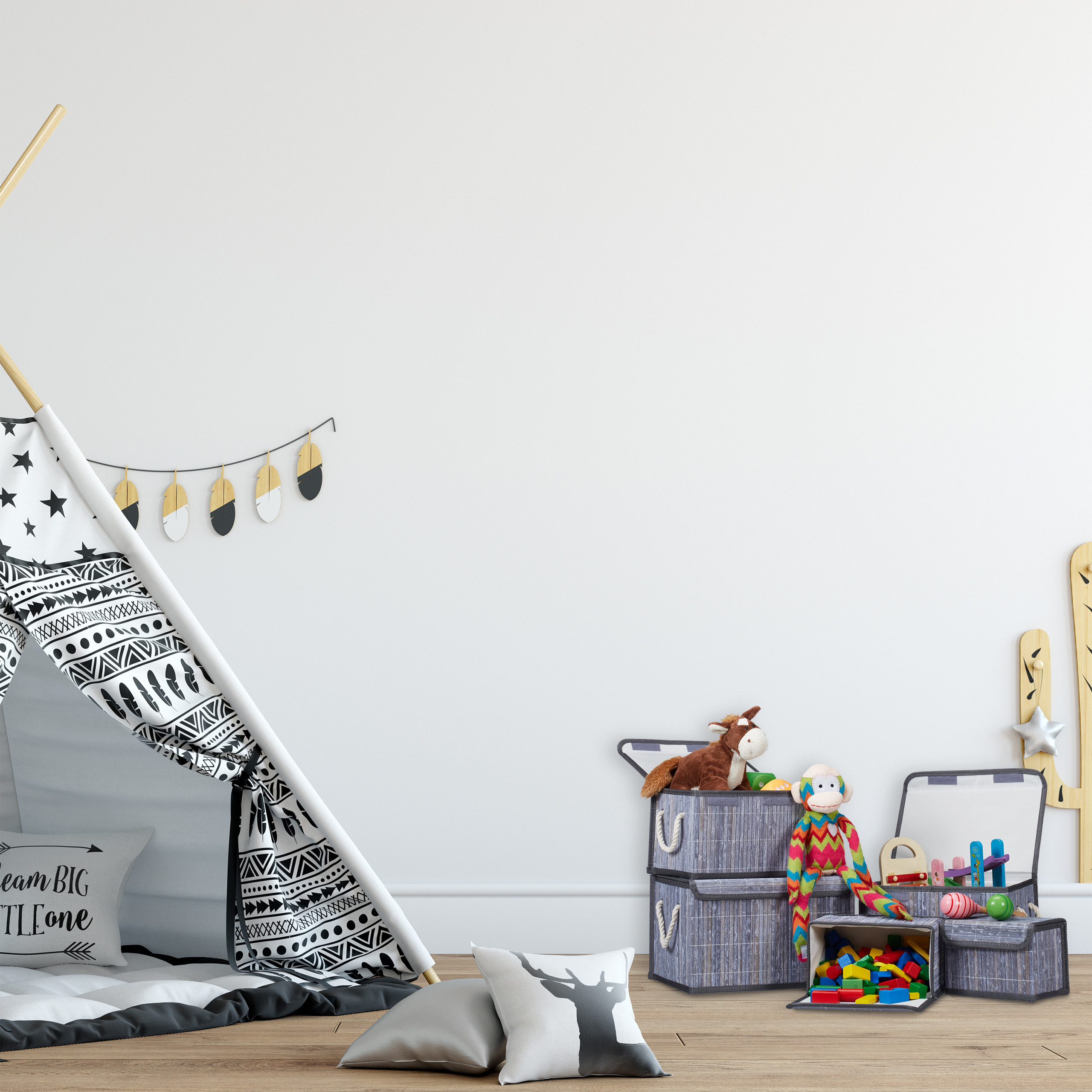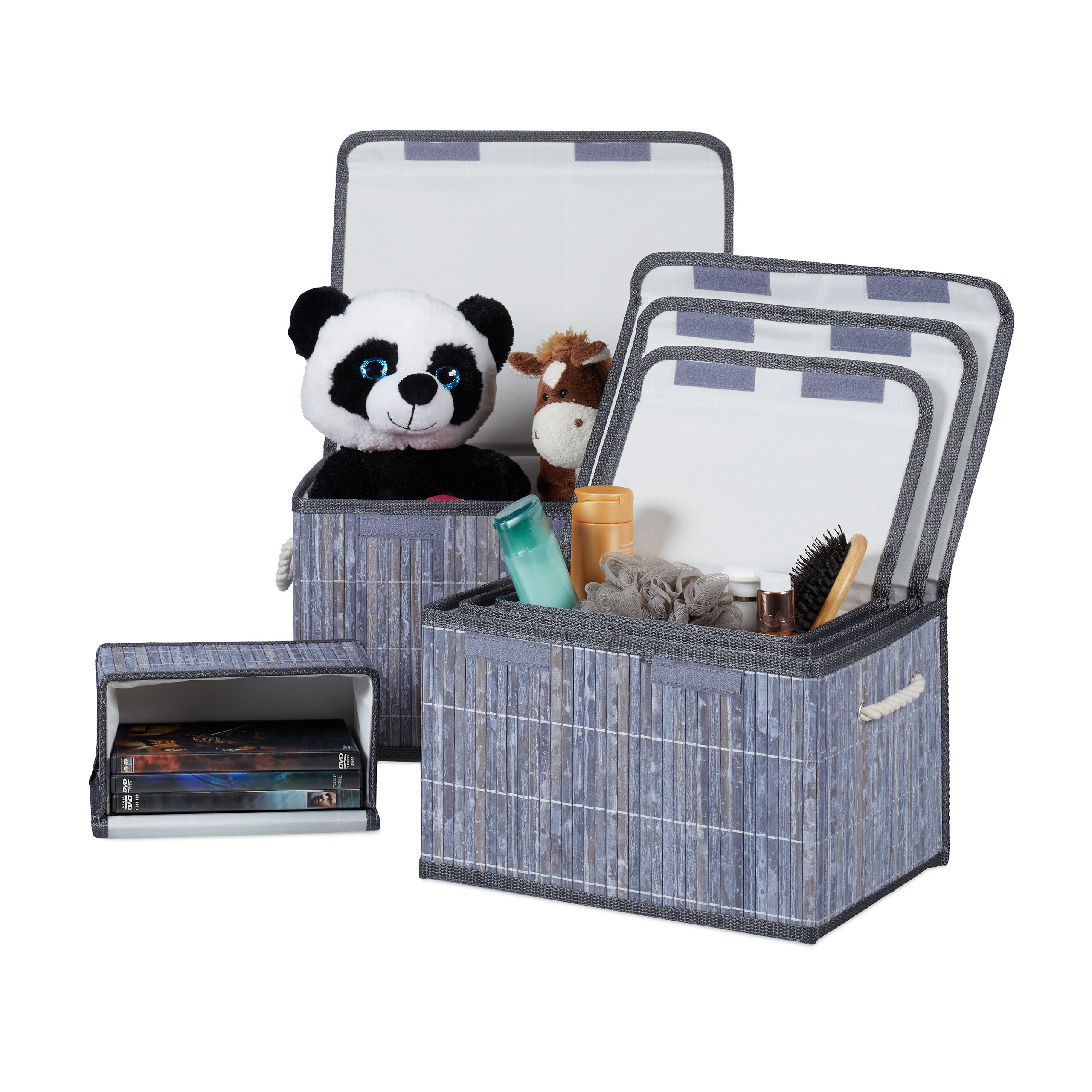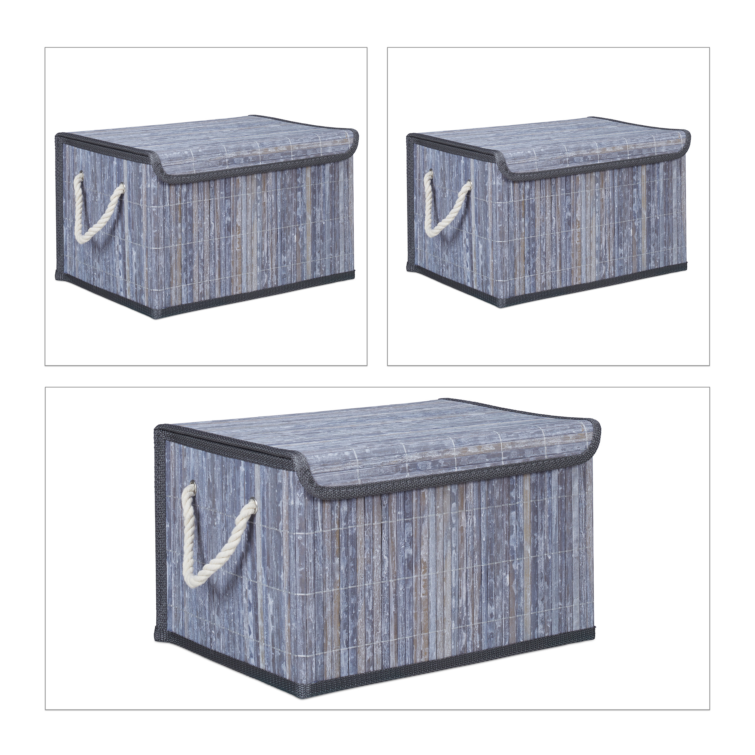 Arpan Set of 3 Grey Nylon Hand Woven Storage Baskets Boxes