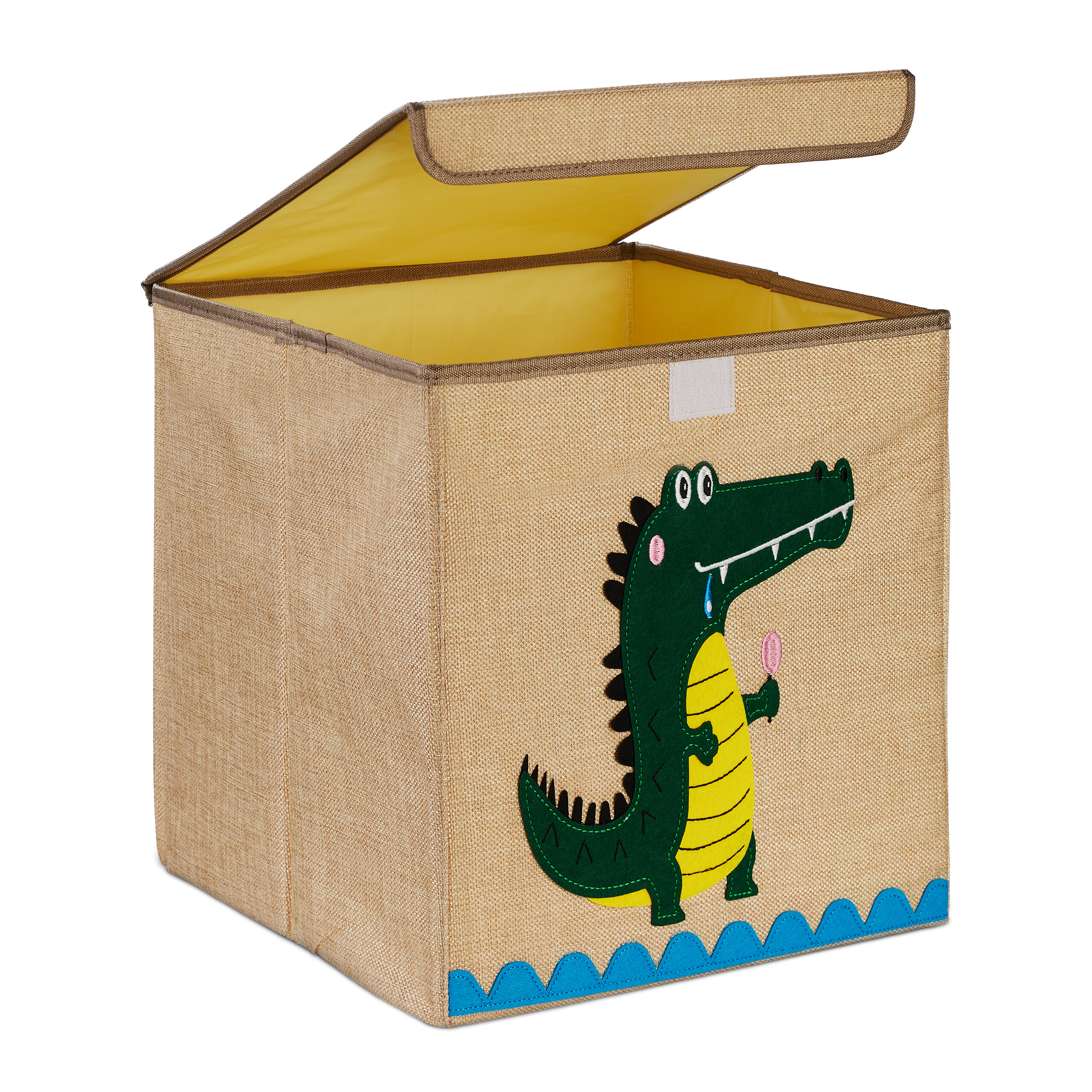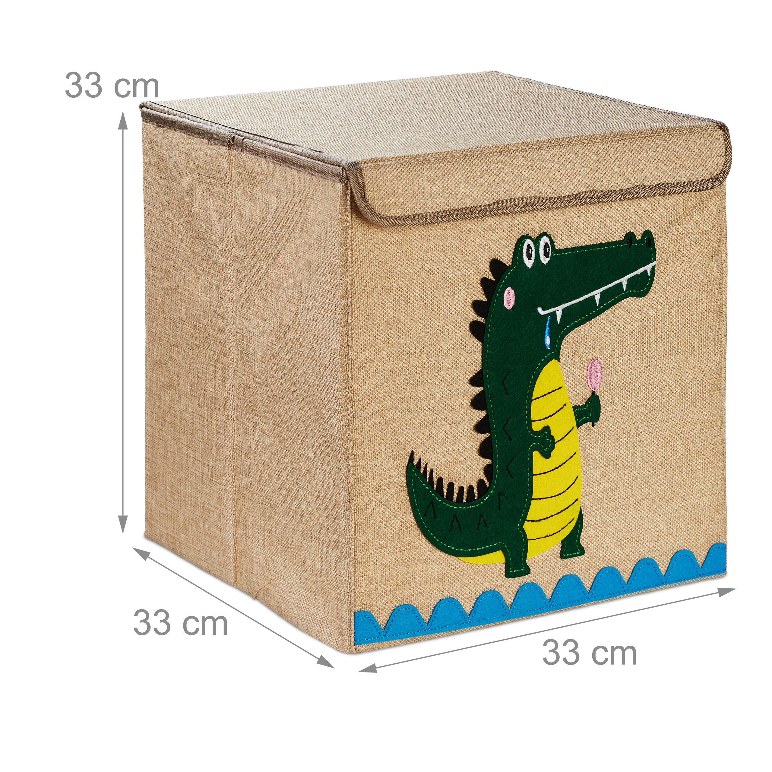 Relaxdays - Storage Box for Kids, Beaver Print, Toy Basket, Foldable, HxWxD: 33 x 33 x 33 cm, Toy Box, Beige/Brown