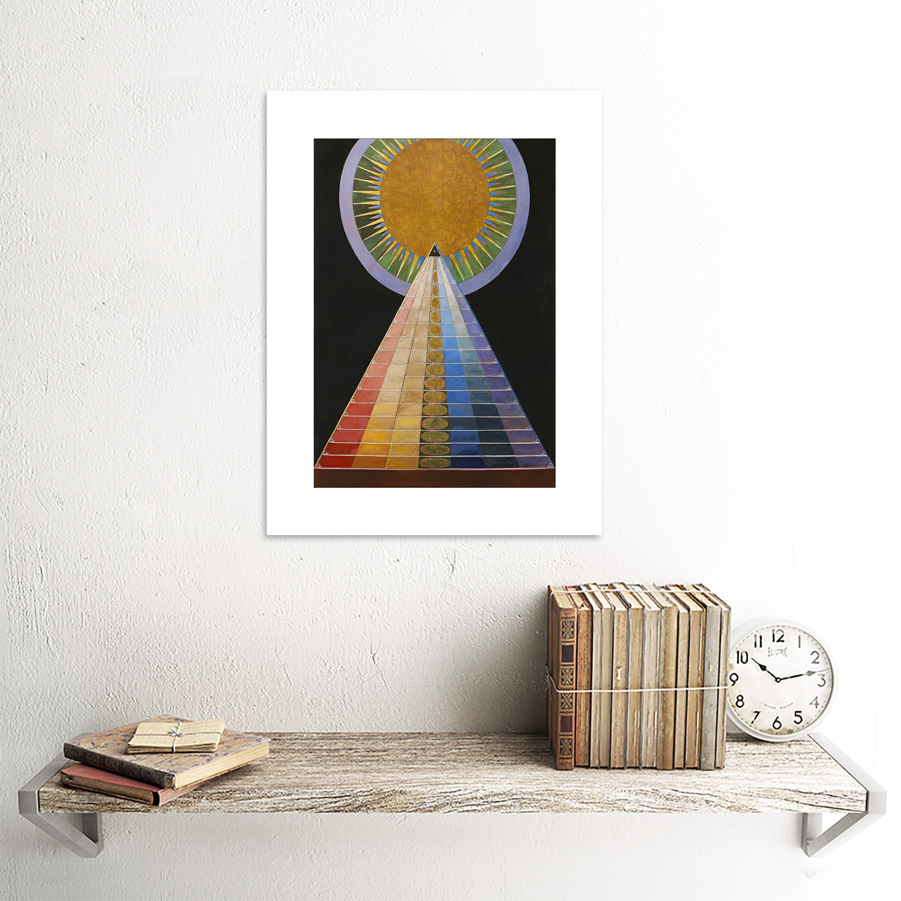 Artery8 Wall Art Print Hilma Af Klint 1907 Altarpiece No 1 Group X Abstract Art Rainblow Block Pyramic Sun Painting Art Framed Size: W12" x H16" Light Oak W12" x H16"