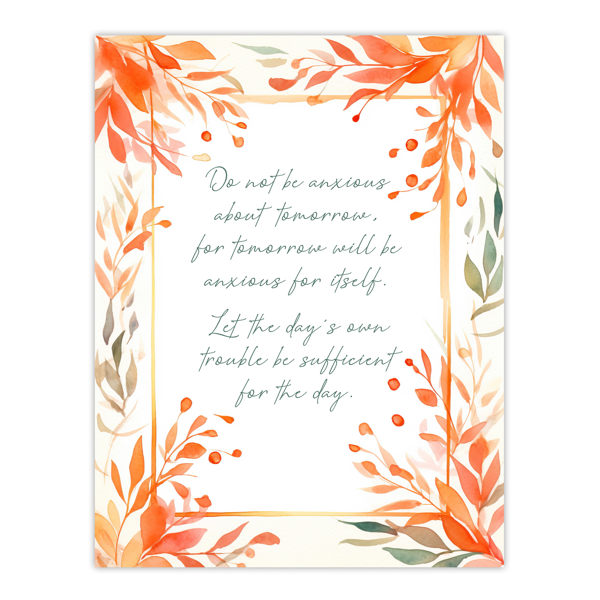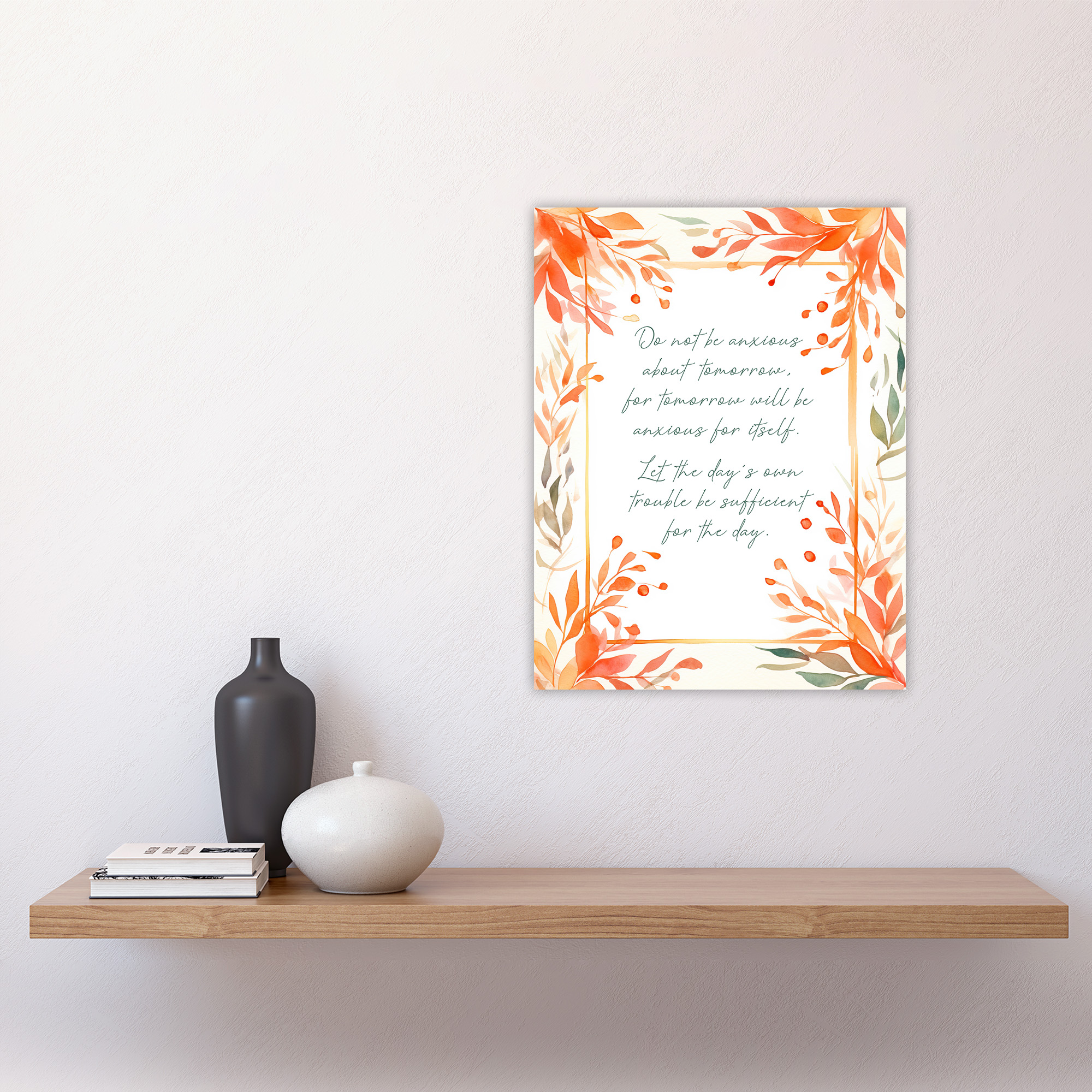Matthew 6:34 Live in the Moment Jesus Bible Quote Orange Wall Art Poster Print