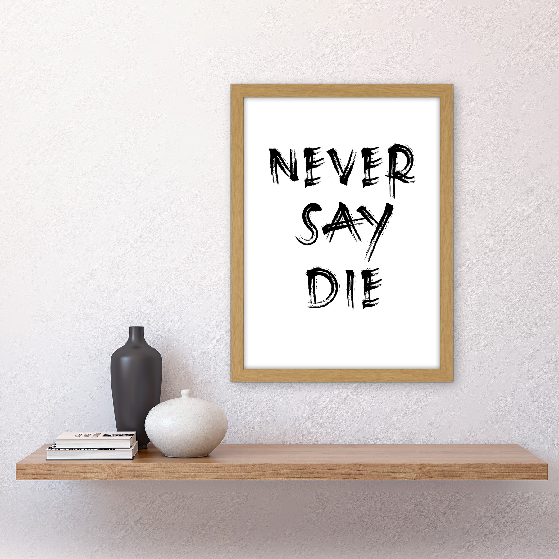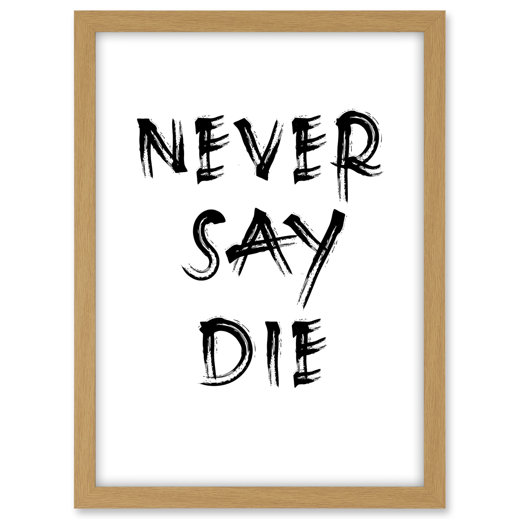 Artery8 Wall Art Print Exercise Motivation Never Say Die Inspirational Positive Gym Decor Workout Living Room Aesthetic Art Framed Light Oak W12" x H16"