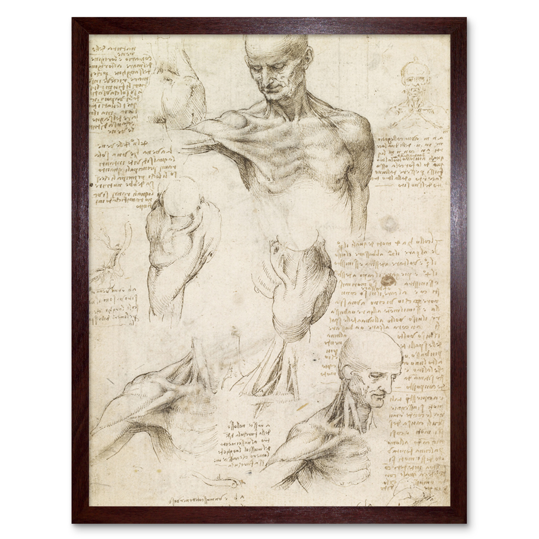 Leonardo Da Vinci Superficial Anatomy The Shoulder And Neck Large Framed Print