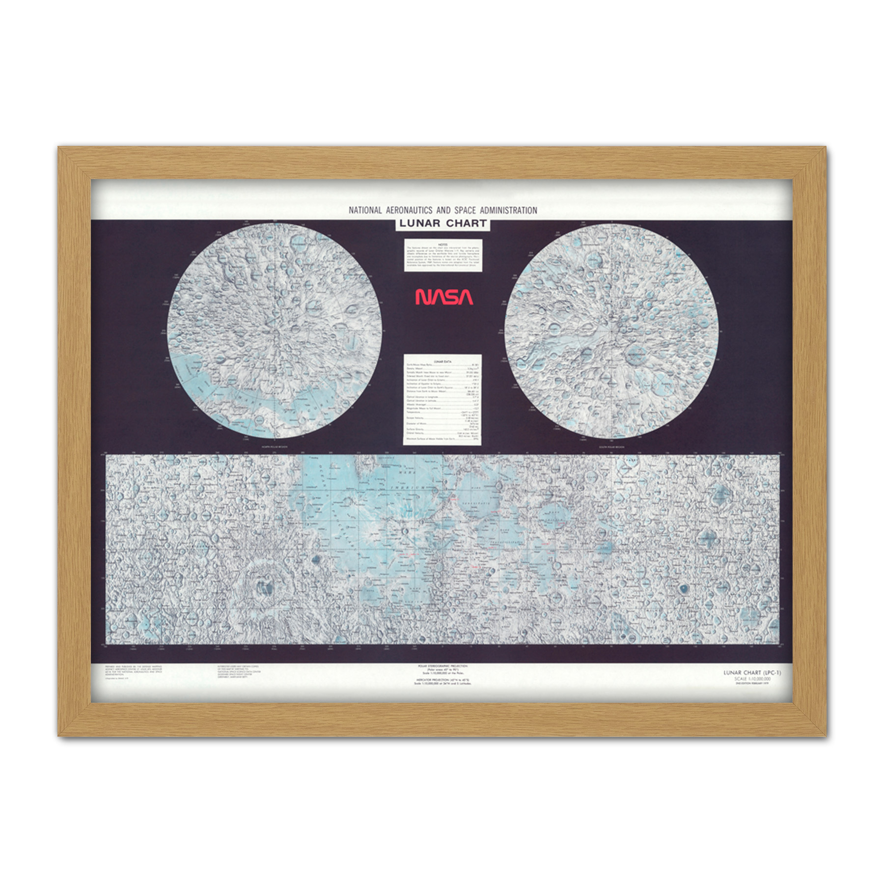 Space NASA 1979 Lunar Chart Moon Map Data Diagram Framed Wall Art Print 18X24 In