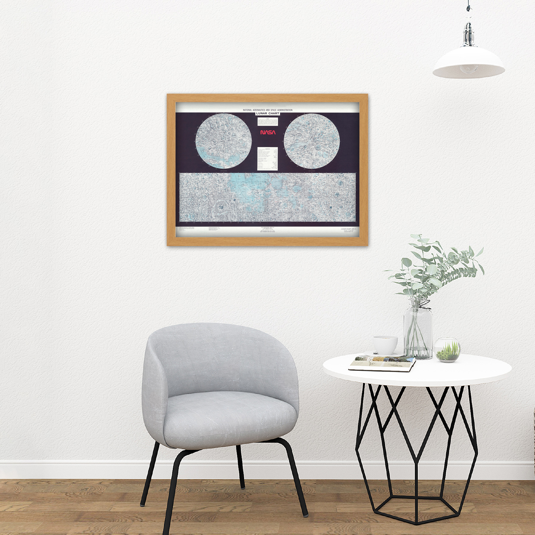 Space Nasa 1979 Lunar Chart Moon Map Data Diagram Framed A4 Wall Art Print