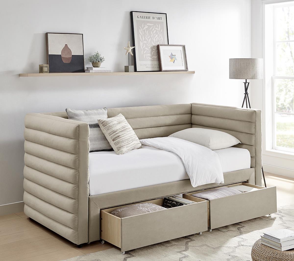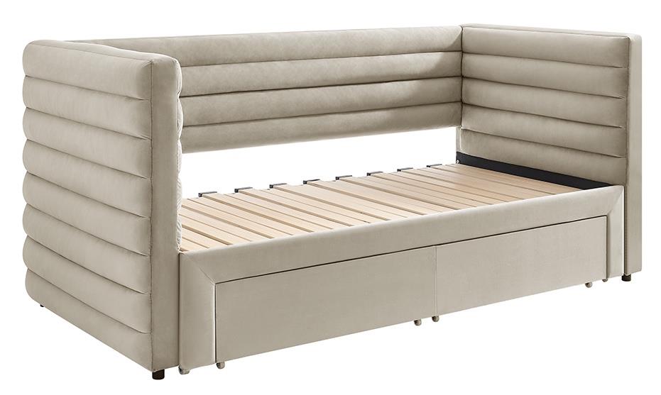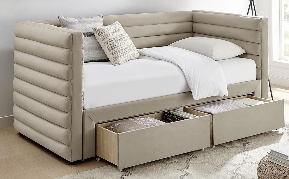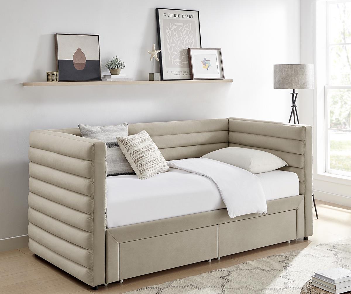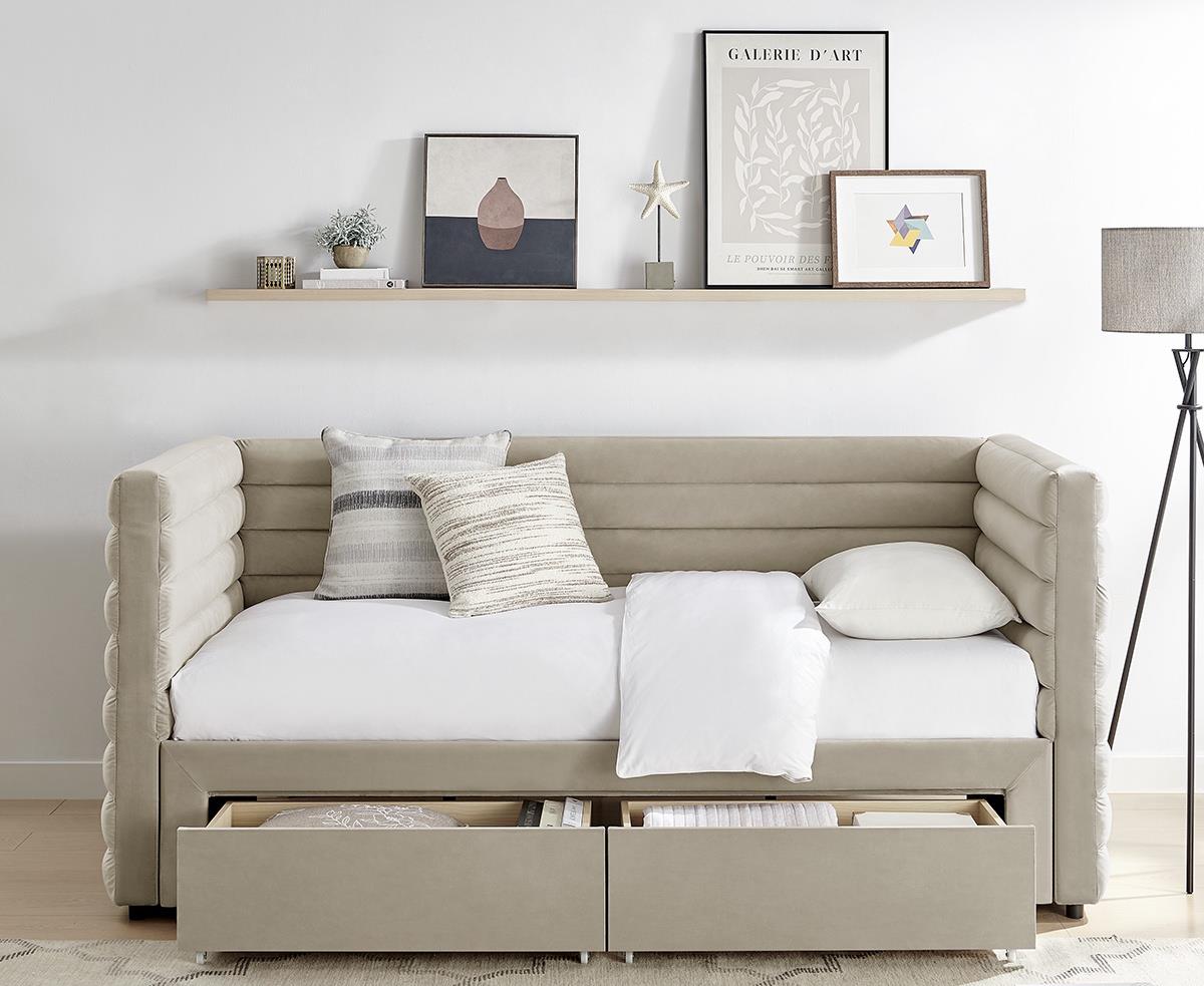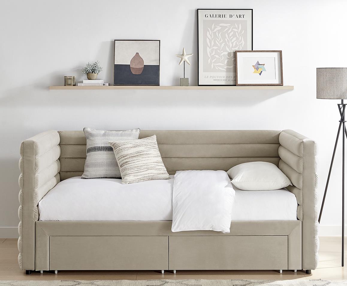 Daybed Velvet Upholstered Bed 3FT Single Sofa Bed with Hydraulic Storage Beige