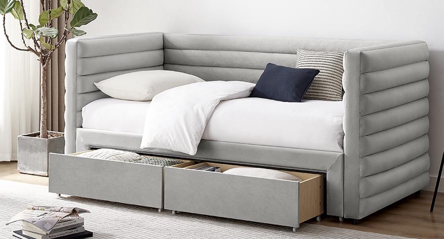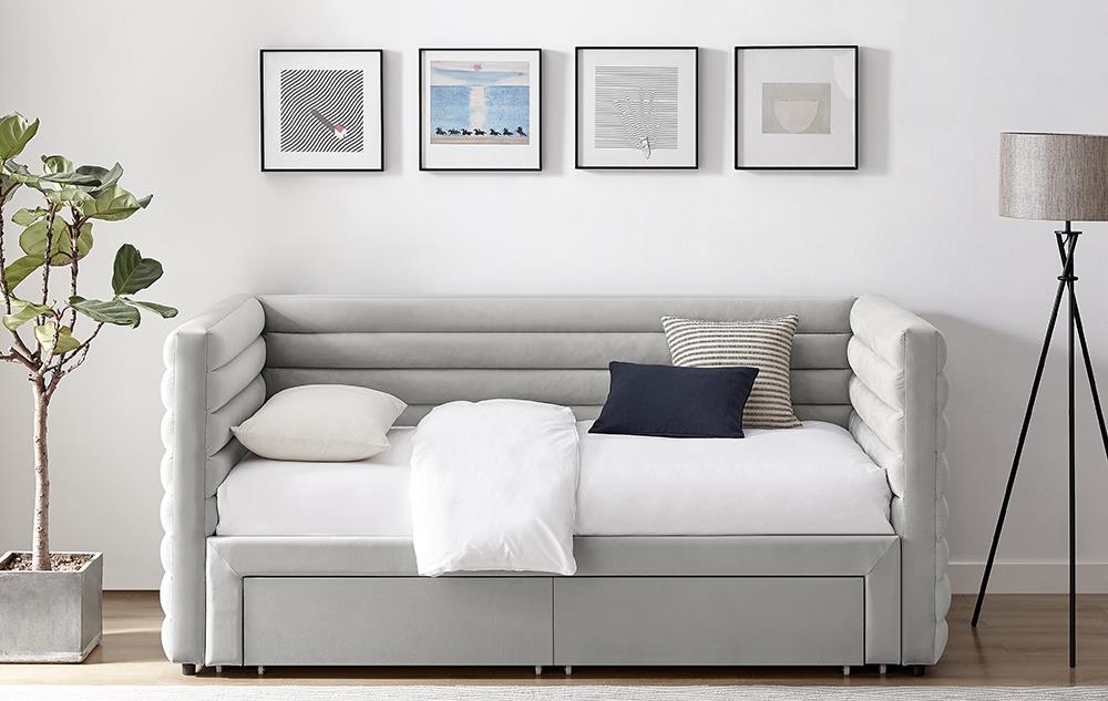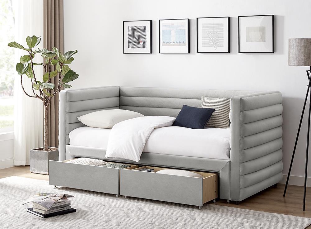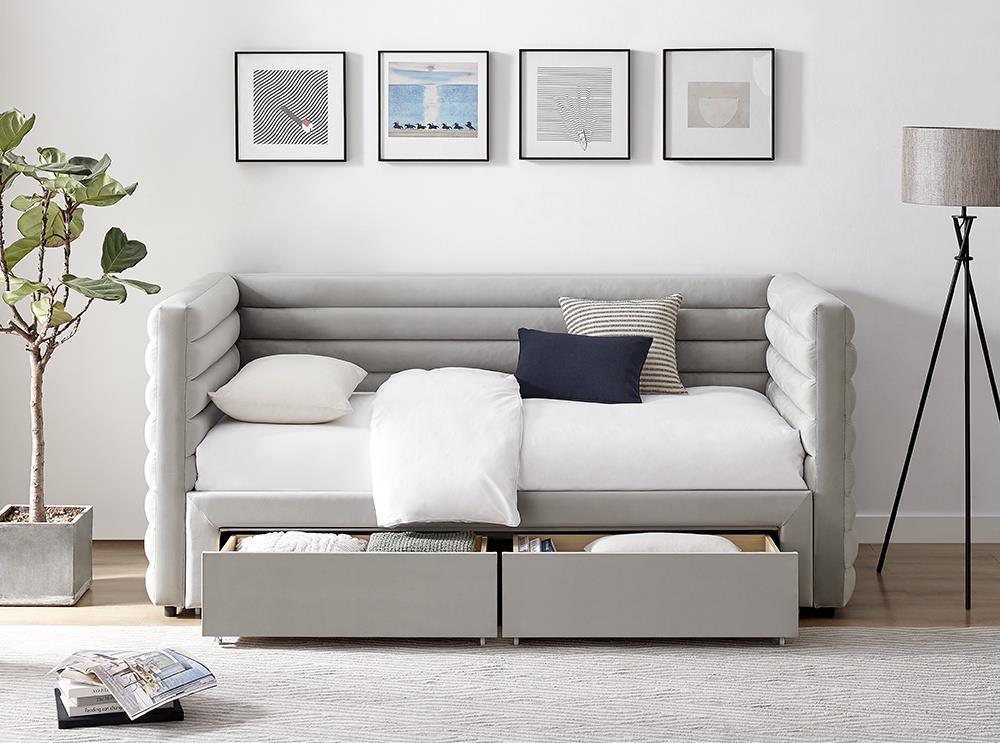 MODERNLUXE Day bed, 3FT single bed 90x190cm, with Trundle, youth bed, for adults & teenagers, easy assembly, Linen, Grey