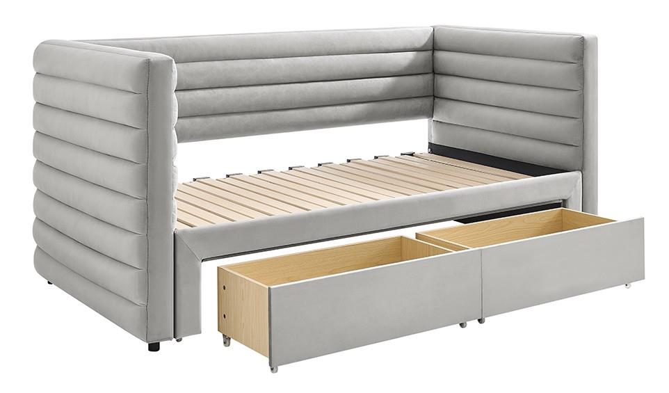 Daybed Velvet Sofabed 3ft Single Sofa Bed With Pull Out Trundle Guest Bed Grey