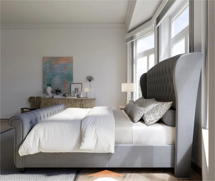 Luxury Tulip Wing Sleigh Bed With/Without Ottoman Gas Lift Storage in Soft Plush