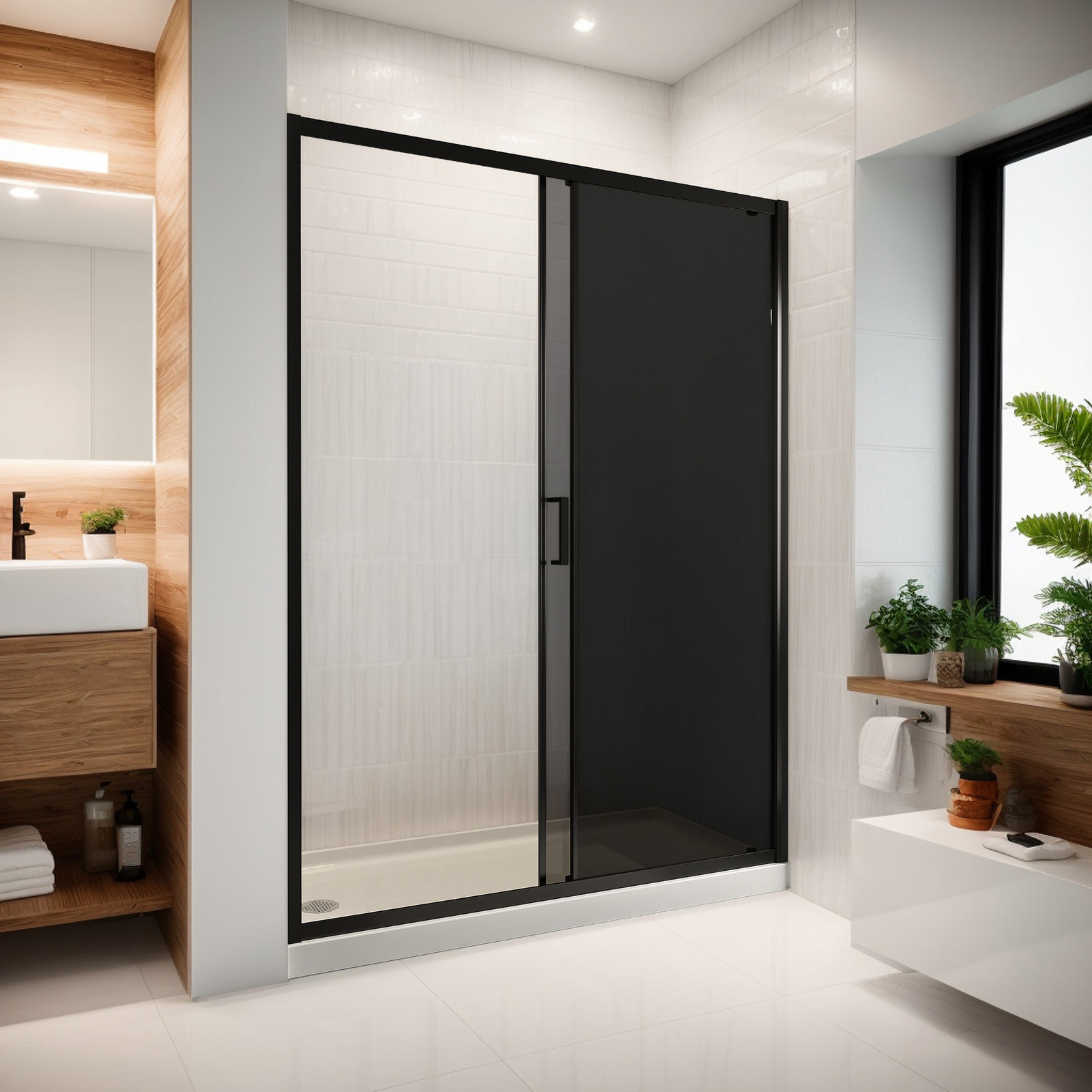 Black Sliding Shower Enclosure Glass 6mm Black Frame Cubicle Door Easy Clean
